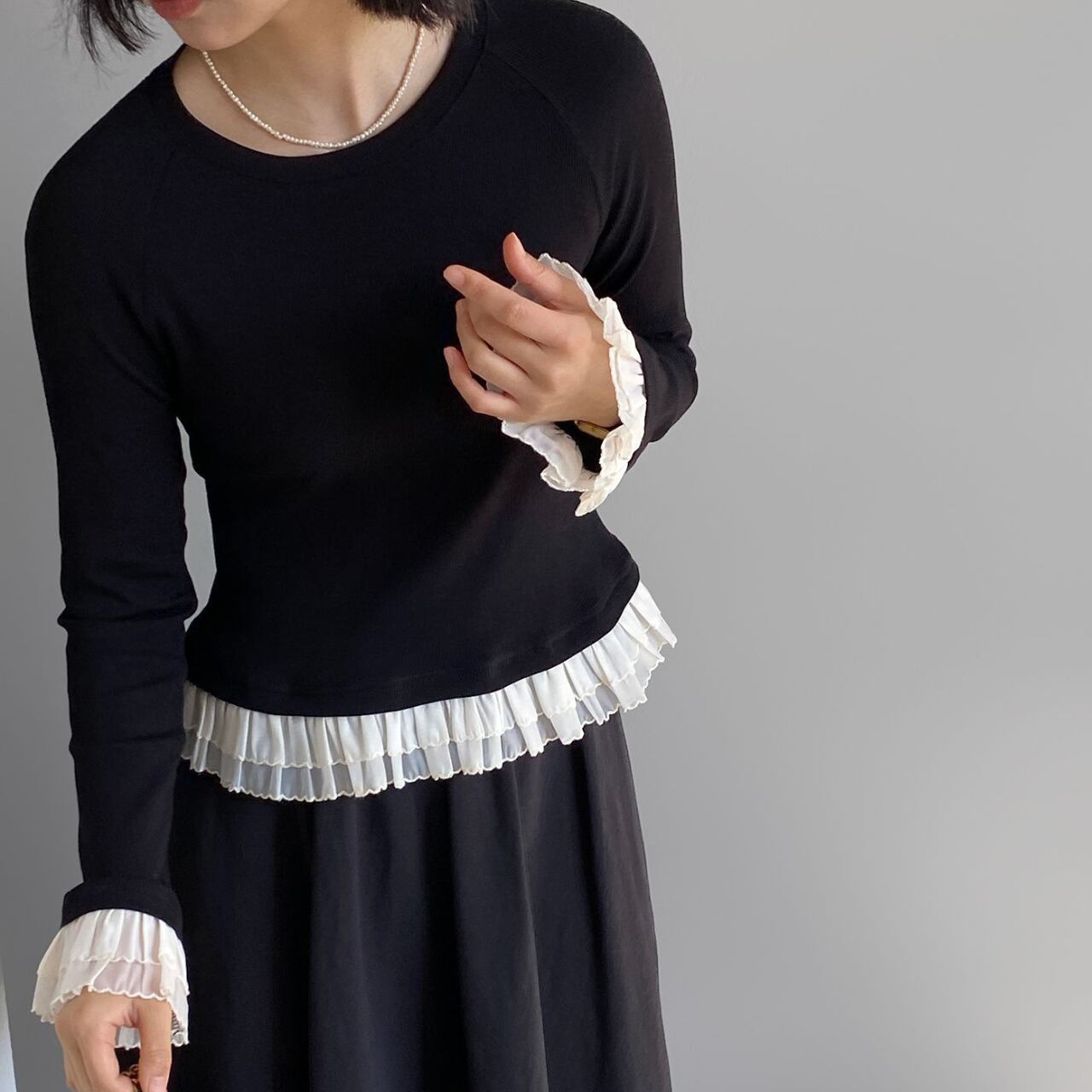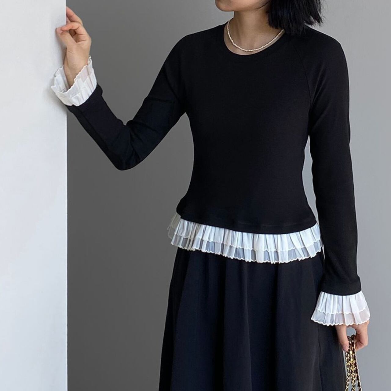 フェミニンカジュアルなデザインとコントラストが目を惹く、長袖カットソー。 袖口と裾のフリルが華やかで、コーディネートに女性らしさをプラスしてくれます。 落ち着いた色合いなので甘くなりすぎず、大人女性の魅力が上品に引き立ちます。 ○カラー グレー ブラック ○サイズ S 胸囲:76cm 着丈:54cm ラグラン袖丈:68cm M 胸囲:80cm 着丈:55cm ラグラン袖丈:70cm *採寸方法により1-3cmの誤差がある場合がございます ○素材 綿46% / レーヨン46% / ポリウレタン8% ◼️注意事項■ *当ショップでは、ご注文をいただいてから、一点ずつ商品をお取り寄せさせていただいております。 *そのためご決済から発送までに、2~4週間前後のお時間をいただいております。余裕をもってご購入いただきますよう、お願い致します。 *商品の画像イメージは、お使いのデバイス設定や、商品撮影の環境等でも実物と色合いに誤差が生じることがあります。 *海外製品のため日本とは製造基準が異なります。ご理解のうえご購入ください。 *イメージ違いやサイズ違い等、お客様都合によりますキャンセル・返品交換はご遠慮ください。 ================== ■ご購入前にこちらをお読みください■ →https://shop.otonatu.com/about ================== ◇Shop top pageはこちらから◇ https://shop.otonatu.com/ ◇今人気!注目のアイテムをチェック↓◇ https://shop.otonatu.com/categories/5693006 ◇Instagram\Please follow us!/ https://www.instagram.com/otonatu.shop