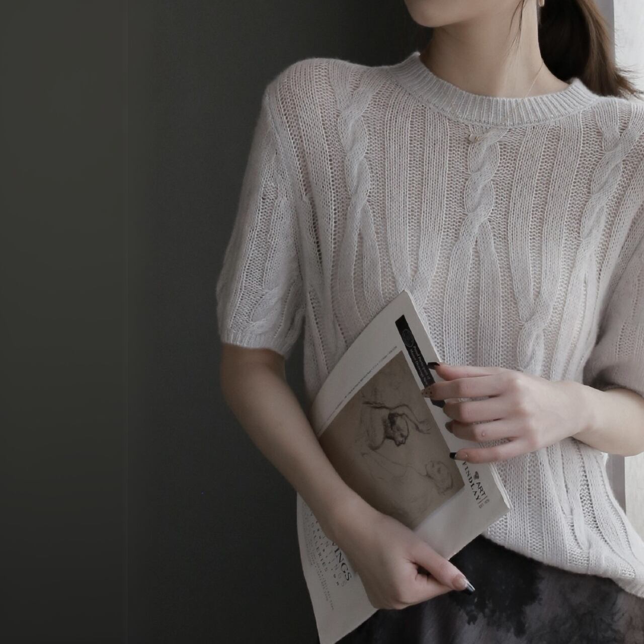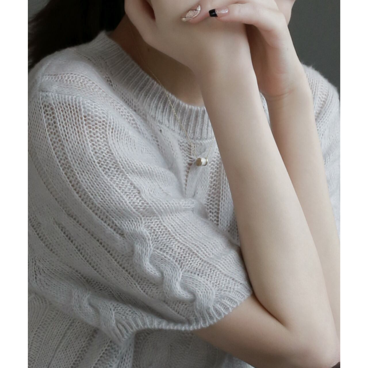 高級感のある上品なデザインが魅力的な、クルーネックの半袖ニット。 肘辺りまである袖丈が、気になる二の腕周りをすっきり見せてくれるのが嬉しいポイント◎ 薄手の生地が涼しげで、パンツにもスカートにも合わせやすい1枚です。 ○カラー オフホワイト ベージュ ライトブルーグレー ○サイズ M 肩幅:40cm 胸囲:96-120cm 着丈:52cm 袖丈:23cm L 肩幅:41cm 胸囲:100-124cm 着丈:54cm 袖丈:24cm *採寸方法により1-3cmの誤差がある場合がございます モデルサイズ 身長:168cm 体重:46kg 胸囲:75cm 腰囲:62cm ヒップ:86cm ○素材 ウール58% / リヨセル35% / カシミヤ7% ◼️注意事項■ *当ショップでは、ご注文をいただいてから、一点ずつ商品をお取り寄せさせていただいております。 *そのためご決済から発送までに、2~4週間前後のお時間をいただいております。余裕をもってご購入いただきますよう、お願い致します。 *商品の画像イメージは、お使いのデバイス設定や、商品撮影の環境等でも実物と色合いに誤差が生じることがあります。 *海外製品のため日本とは製造基準が異なります。ご理解のうえご購入ください。 *イメージ違いやサイズ違い等、お客様都合によりますキャンセル・返品交換はご遠慮ください。 ================== ■ご購入前にこちらをお読みください■ →https://shop.otonatu.com/about ================== ◇Shop top pageはこちらから◇ https://shop.otonatu.com/ ◇今人気!注目のアイテムをチェック↓◇ https://shop.otonatu.com/categories/5693006 ◇Instagram\Please follow us!/ https://www.instagram.com/otonatu.shop