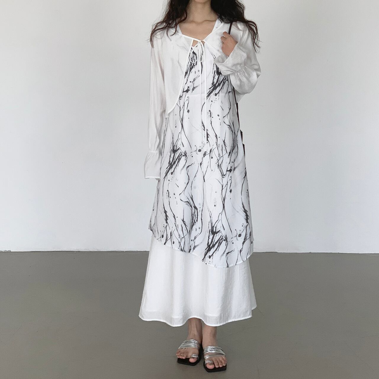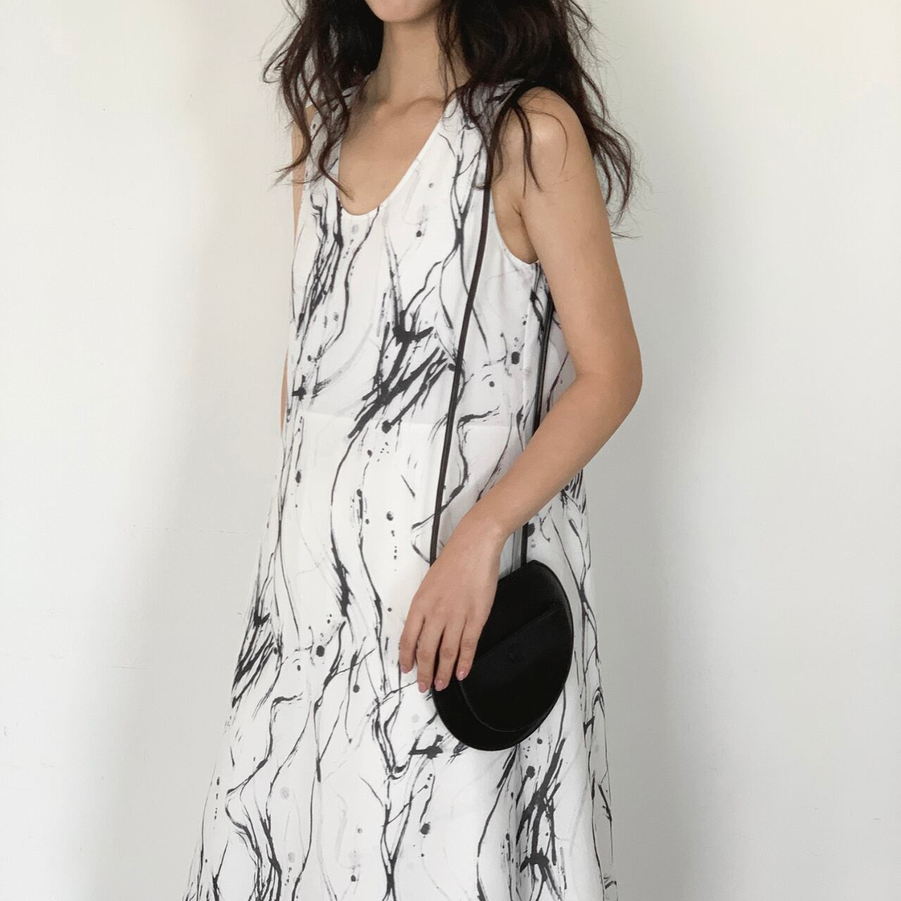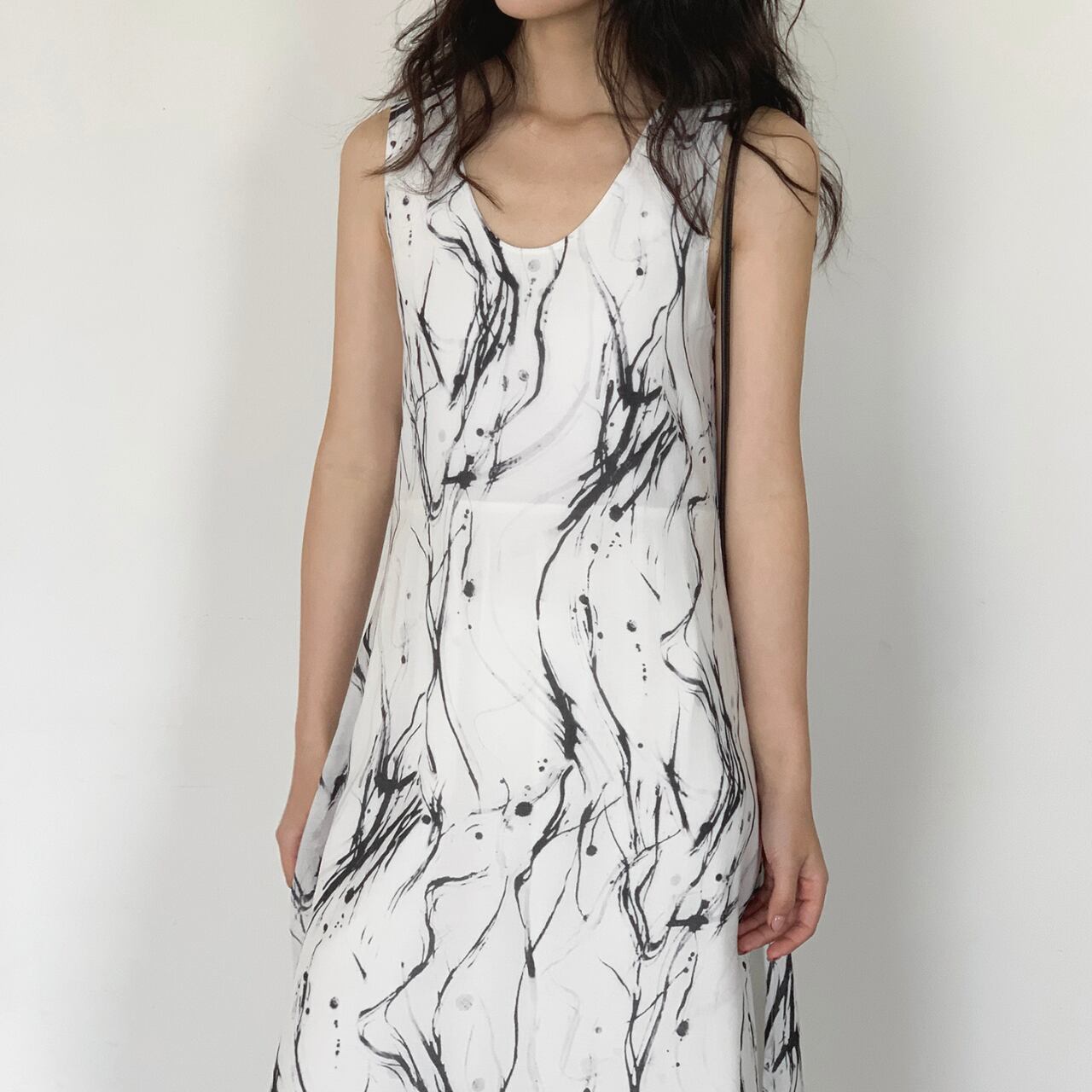 1枚でサマになる、アート感たっぷりのマーブル柄ワンピース。