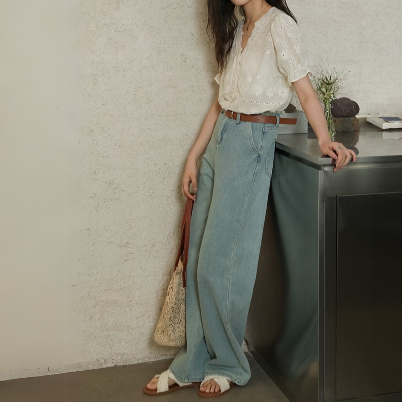 袖口や襟元のディテールが程よく甘さをプラスしてくれるので、デニムでカジュアルダウンしたり、スカートと合わせてきれいめにも◎