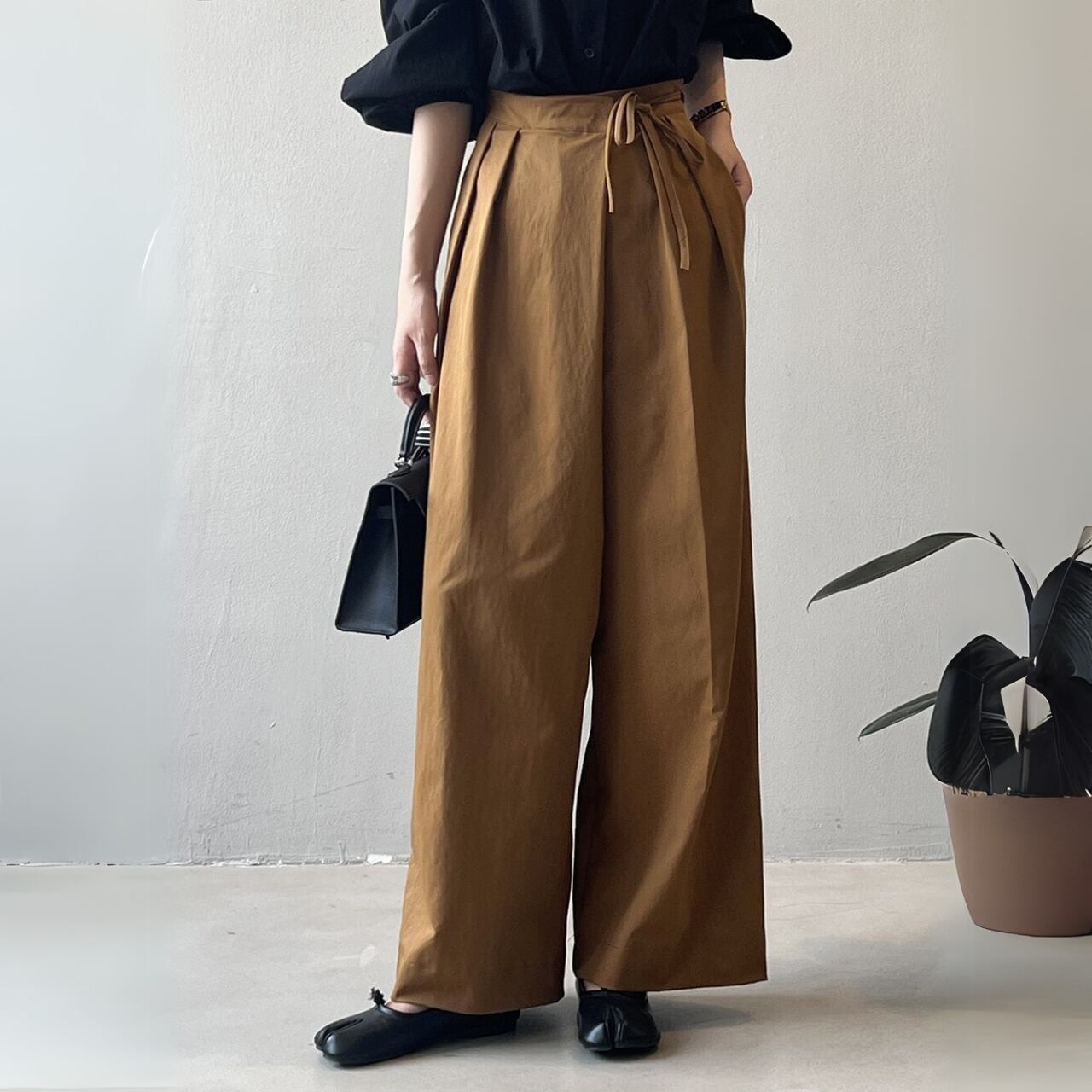 ウエストの共布リボンと深めのタックが美シルエットを叶える、上品ワイドパンツ。 ほんのり丸みを持たせたワイドラインが、気になる腰周りや脚のラインをカバーしつつ、リラクシーな印象に。 トップスインでリボンを見せるだけで、ぐっと洗練されたスタイリングが完成! こっくりとしたパンプキンブラウン、爽やかで清潔感たっぷりのホワイト、クールでシャープなブラックの3色展開です。 ○カラー ブラウン ホワイト ブラック ○サイズ M ウエスト:64cm ヒップ:96cm わたり周り:70cm 着丈:100cm 裾周り:60cm L ウエスト:68cm ヒップ:100cm わたり周り:72cm 着丈:101cm 裾周り:62cm *採寸方法により1-3cmの誤差がある場合がございます ○素材 ポリエステル100% ◼️注意事項■ *当ショップでは、ご注文をいただいてから、一点ずつ商品をお取り寄せさせていただいております。 *そのためご決済から発送までに、2~4週間前後のお時間をいただいております。余裕をもってご購入いただきますよう、お願い致します。 *商品の画像イメージは、お使いのデバイス設定や、商品撮影の環境等でも実物と色合いに誤差が生じることがあります。 *海外製品のため日本とは製造基準が異なります。ご理解のうえご購入ください。 *イメージ違いやサイズ違い等、お客様都合によりますキャンセル・返品交換はご遠慮ください。 ================== ■ご購入前にこちらをお読みください■ →https://shop.otonatu.com/about ================== ◇Shop top pageはこちらから◇ https://shop.otonatu.com/ ◇今人気!注目のアイテムをチェック↓◇ https://shop.otonatu.com/categories/5693006 ◇Instagram\Please follow us!/ https://www.instagram.com/otonatu.shop