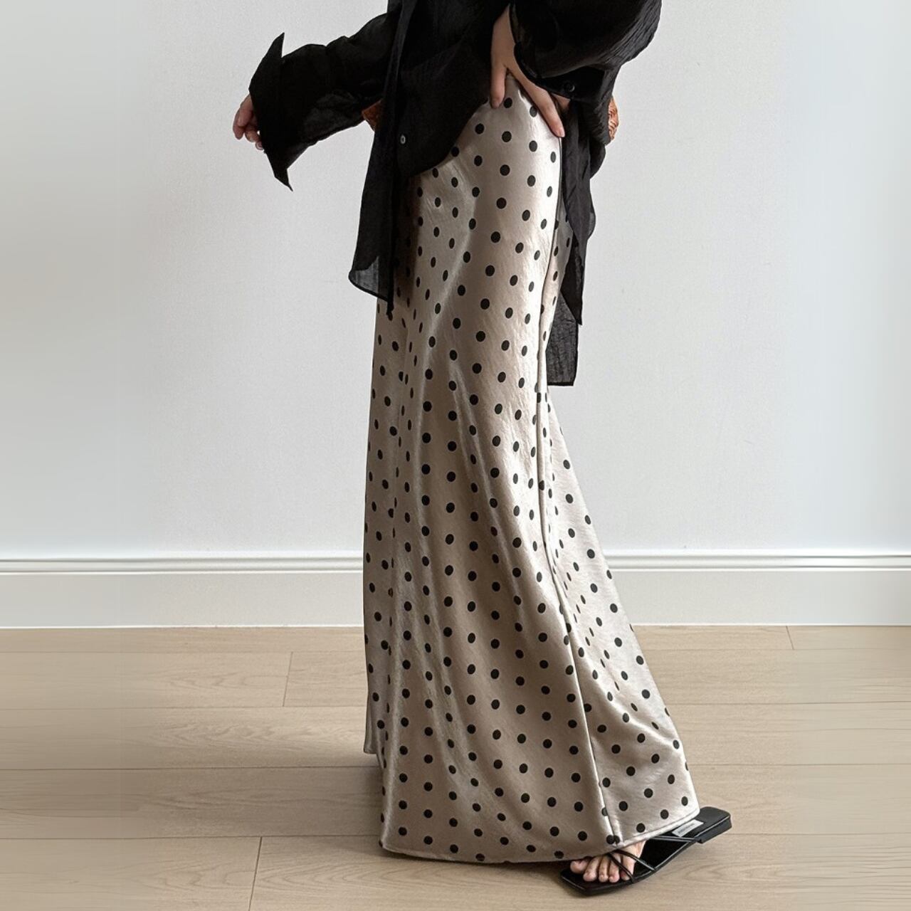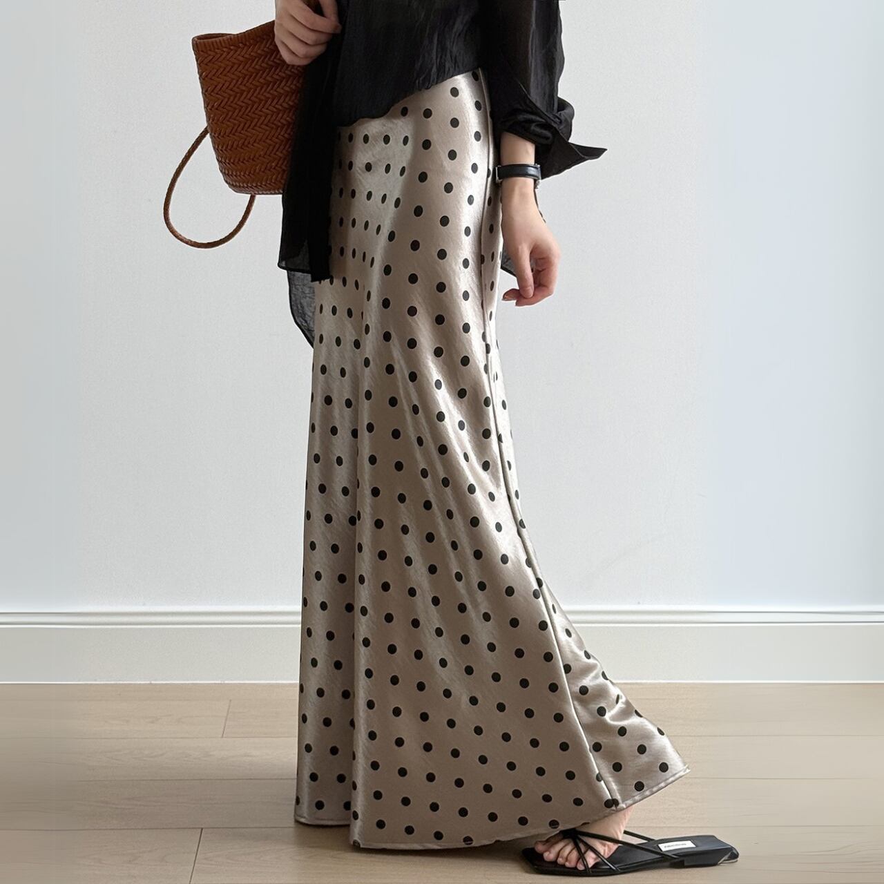 大人の可愛らしさを引き立てるドット柄が、シンプルながらも印象的な一枚です。