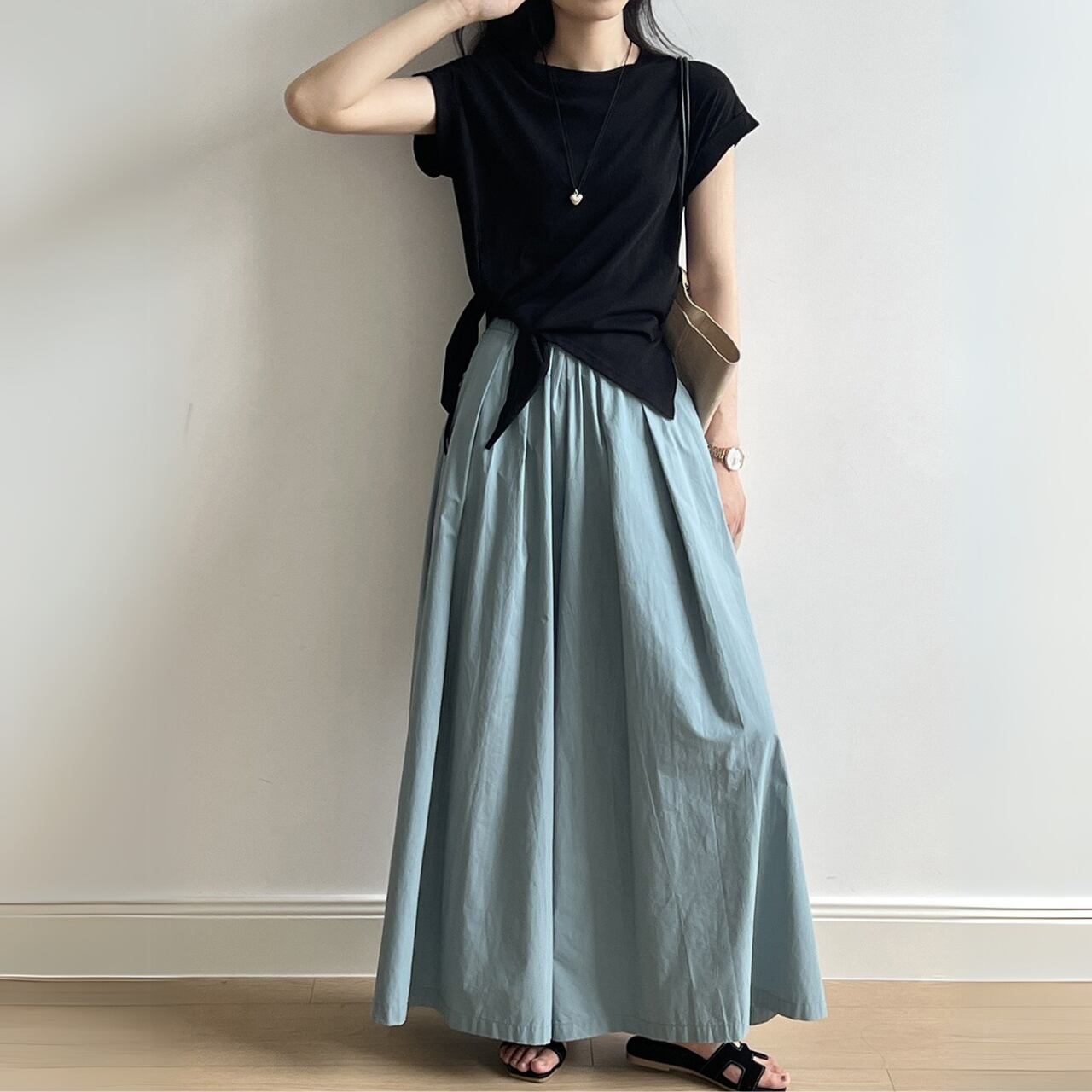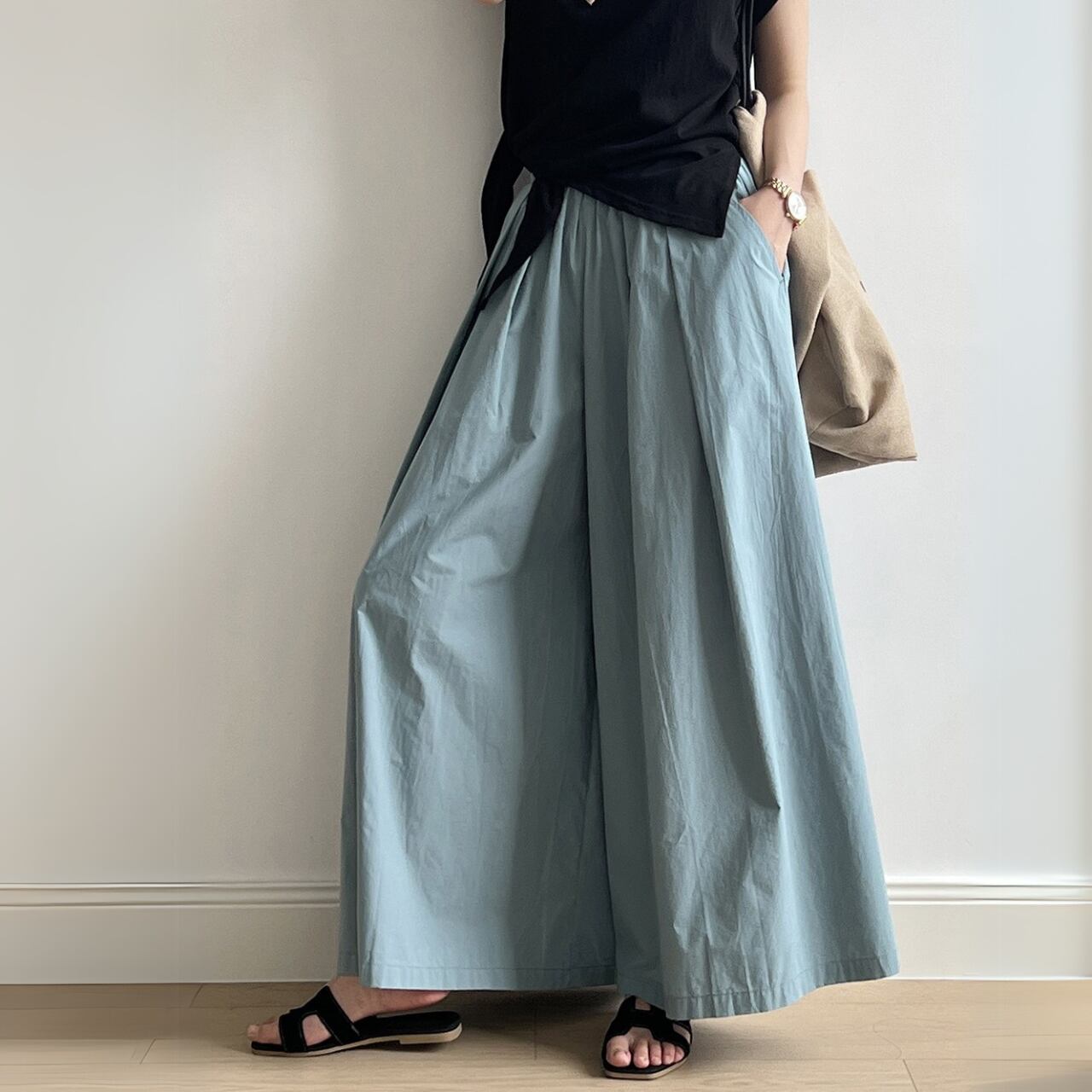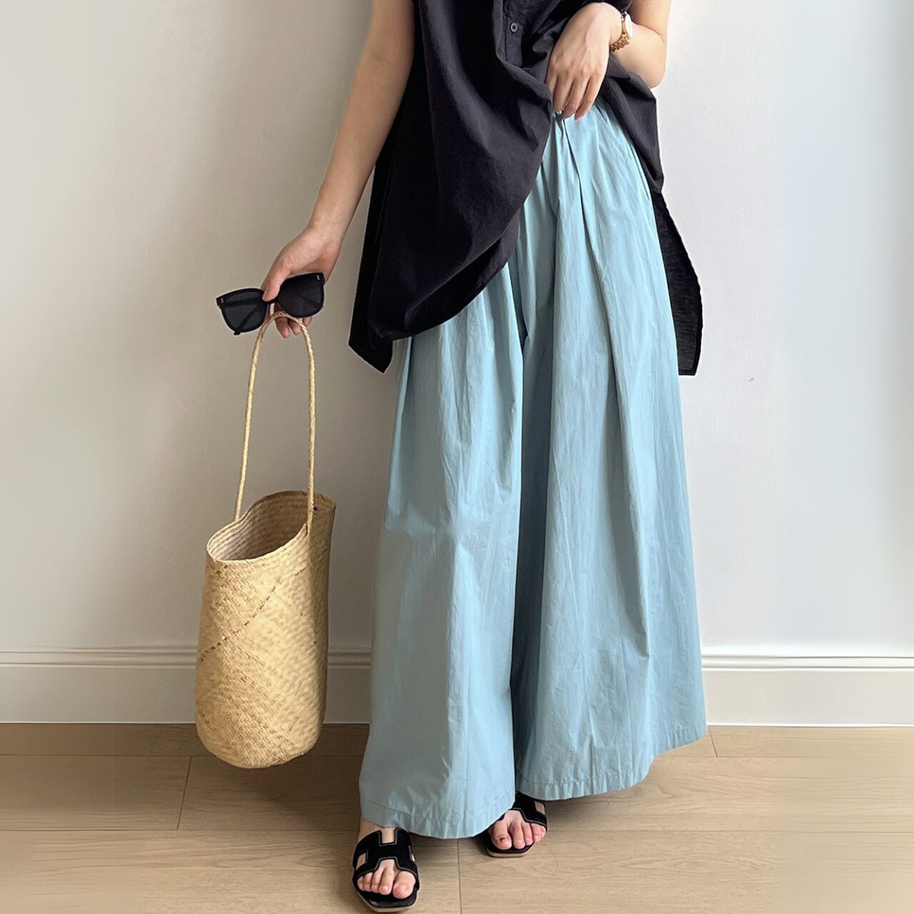 風をはらむような軽やかさが魅力の、ボリュームたっぷりなタックワイドパンツ。