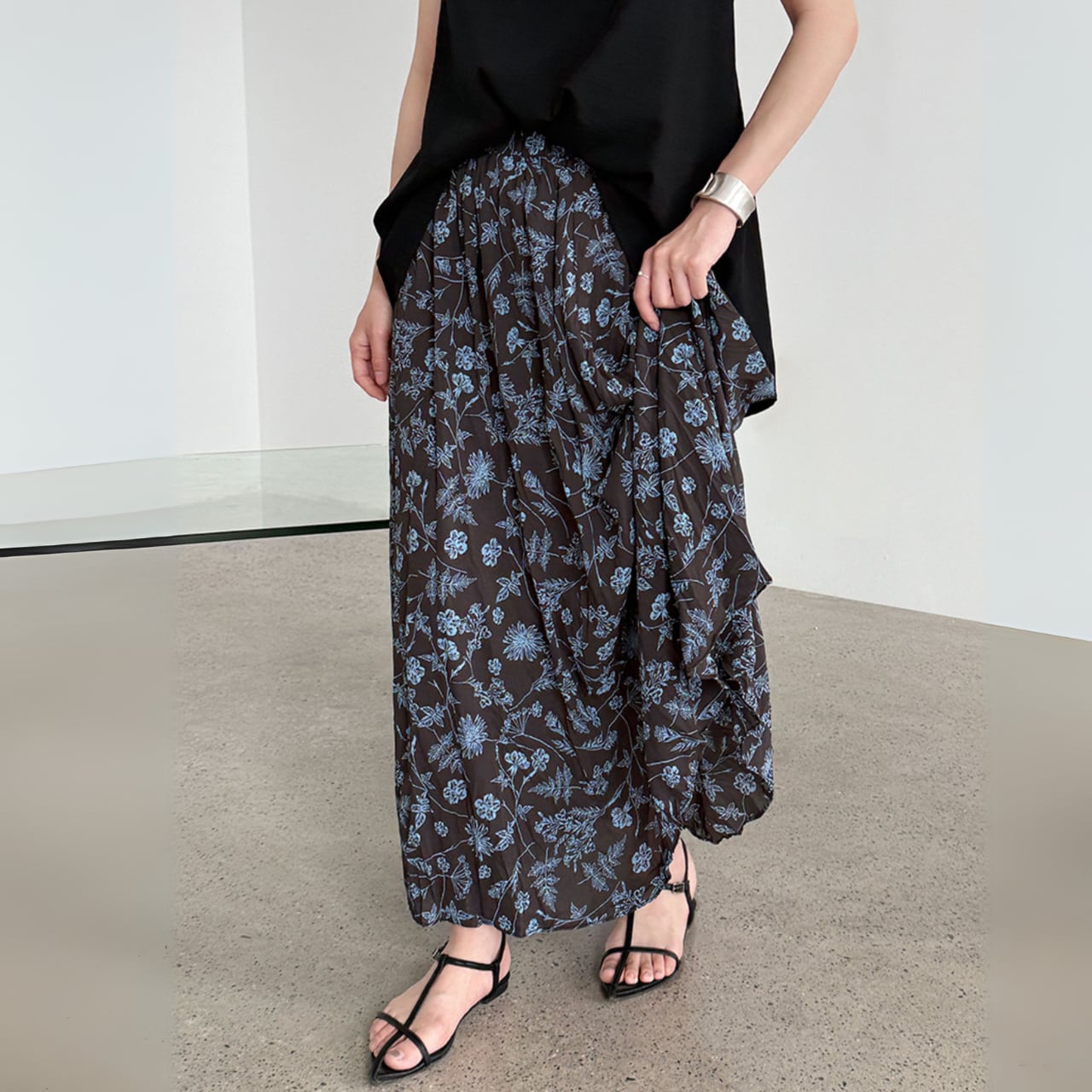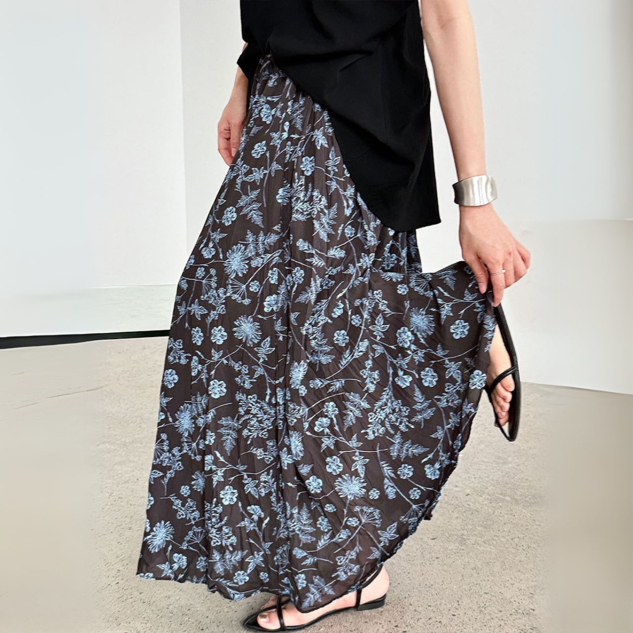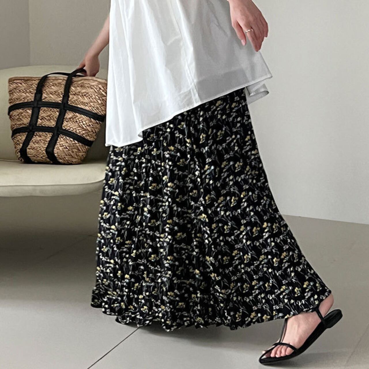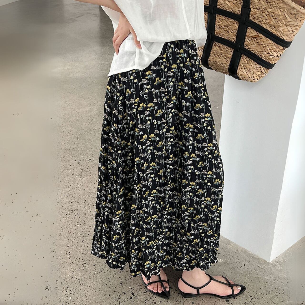 ふわりと広がるシルエットが大人フェミニンなロングスカート。 落ち着いた配色の花柄は、カラーによって印象が異なるのがポイント! 甘さ控えめなブルーは大人っぽく洗練された印象、イエローは爽やかでナチュラルな雰囲気が魅力。 シンプルなトップスと合わせるだけで、スカートの華やかさが際立つ一枚です。 ○カラー ブルー イエロー ○サイズ M ウエスト:64-96cm ヒップ:119cm 着丈:83cm L ウエスト:68-100cm ヒップ:123cm 着丈:84cm *採寸方法により1-3cmの誤差がある場合がございます モデルサイズ 身長:163cm 体重:47kg 胸囲:83cm 腰囲:62cm ヒップ:87cm ・・・着用サイズM ○素材 ポリエステル100% ◼️注意事項■ *当ショップでは、ご注文をいただいてから、一点ずつ商品をお取り寄せさせていただいております。 *そのためご決済から発送までに、2~4週間前後のお時間をいただいております。余裕をもってご購入いただきますよう、お願い致します。 *商品の画像イメージは、お使いのデバイス設定や、商品撮影の環境等でも実物と色合いに誤差が生じることがあります。 *海外製品のため日本とは製造基準が異なります。ご理解のうえご購入ください。 *イメージ違いやサイズ違い等、お客様都合によりますキャンセル・返品交換はご遠慮ください。 ================== ■ご購入前にこちらをお読みください■ →https://shop.otonatu.com/about ================== ◇Shop top pageはこちらから◇ https://shop.otonatu.com/ ◇今人気!注目のアイテムをチェック↓◇ https://shop.otonatu.com/categories/5693006 ◇Instagram\Please follow us!/ https://www.instagram.com/otonatu.shop