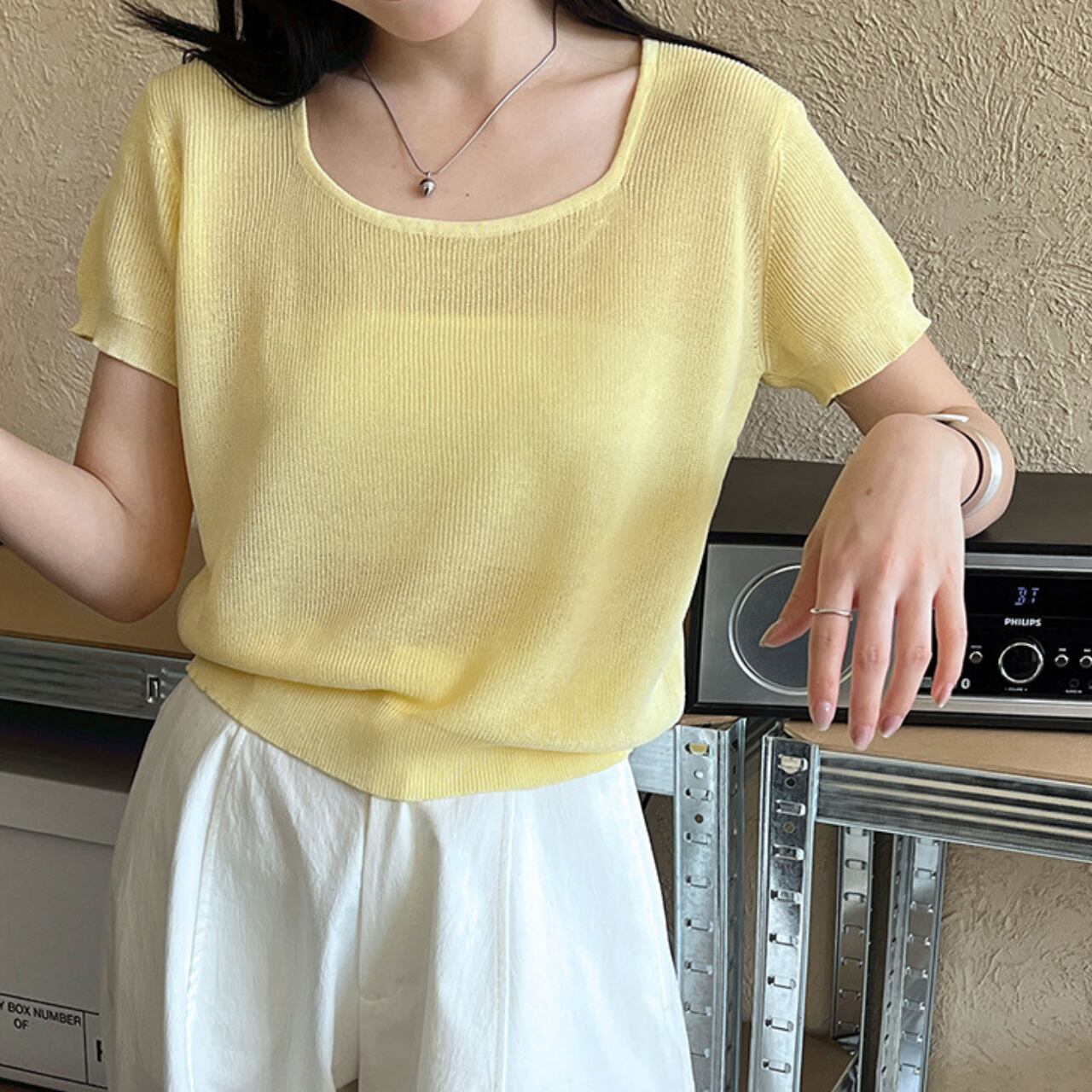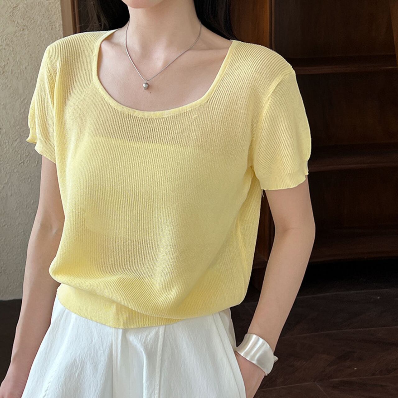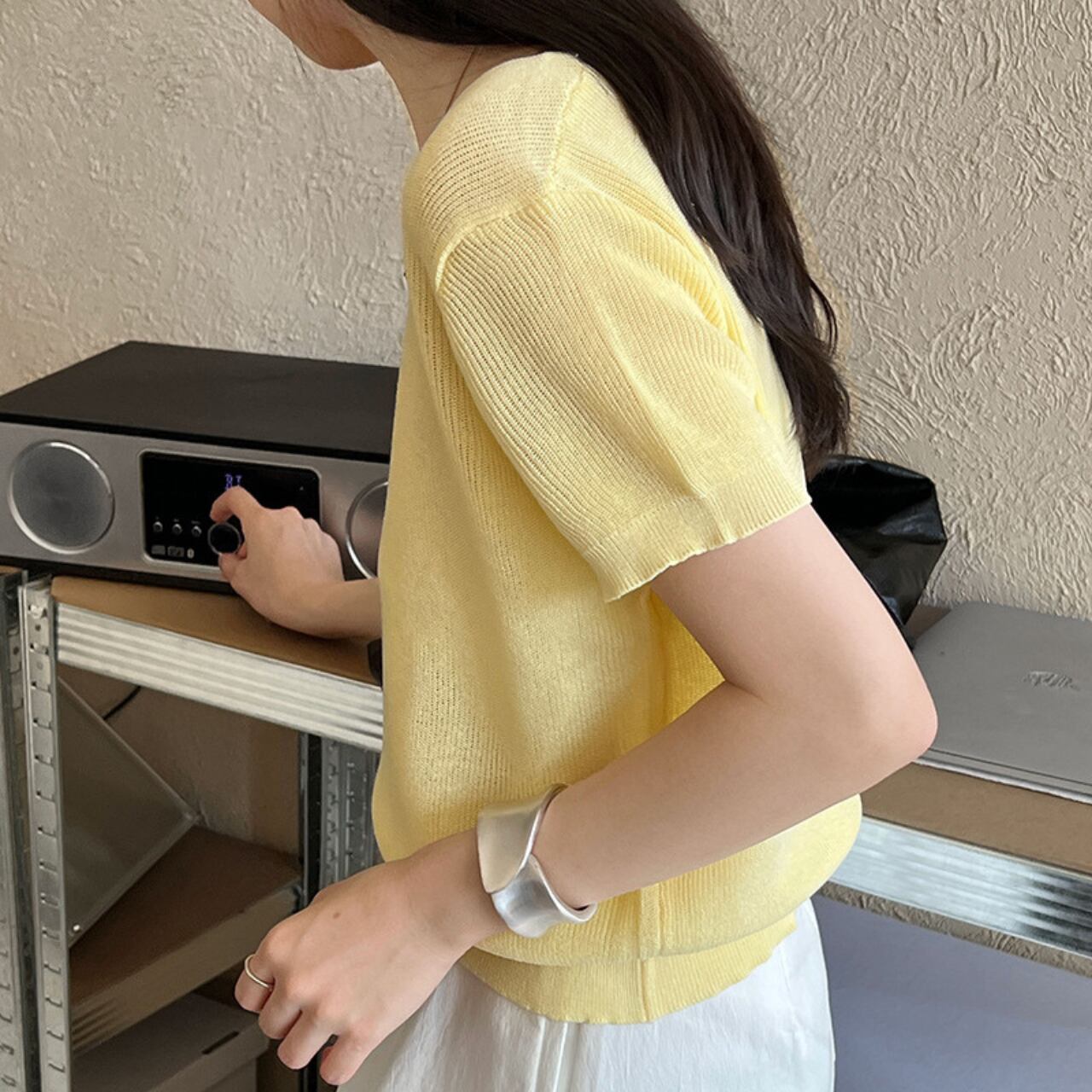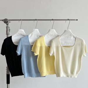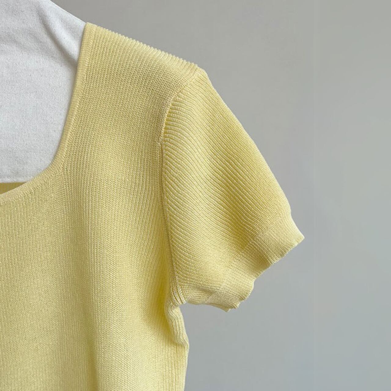 涼やかな透け感×デコルテラインをきれいに見せてくれるスクエアネックが印象的なニットソー。 デニムと合わせてこなれ感のあるカジュアルスタイル、スカートを合わせれば女性しさが引き立つきれいめコーデに仕上がります。 シンプルながらも着映えするデザインで、色違いで揃えたくなる一枚です。 ○カラー ブラック アイボリー ライトイエロー ライトブルー ○サイズ F 肩幅:38cm 胸囲:92cm 着丈:48cm 袖丈:17cm 裾周り:76cm *採寸方法により1-3cmの誤差がある場合がございます モデルサイズ 身長:163cm 体重:47kg 胸囲:83cm 腰囲:62cm ヒップ:87cm ・・・着用サイズM ○素材 リヨセル73% / ポリエステル15% / リネン12% ◼️注意事項■ *当ショップでは、ご注文をいただいてから、一点ずつ商品をお取り寄せさせていただいております。 *そのためご決済から発送までに、2~4週間前後のお時間をいただいております。余裕をもってご購入いただきますよう、お願い致します。 *商品の画像イメージは、お使いのデバイス設定や、商品撮影の環境等でも実物と色合いに誤差が生じることがあります。 *海外製品のため日本とは製造基準が異なります。ご理解のうえご購入ください。 *イメージ違いやサイズ違い等、お客様都合によりますキャンセル・返品交換はご遠慮ください。 ================== ■ご購入前にこちらをお読みください■ →https://shop.otonatu.com/about ================== ◇Shop top pageはこちらから◇ https://shop.otonatu.com/ ◇今人気!注目のアイテムをチェック↓◇ https://shop.otonatu.com/categories/5693006 ◇Instagram\Please follow us!/ https://www.instagram.com/otonatu.shop