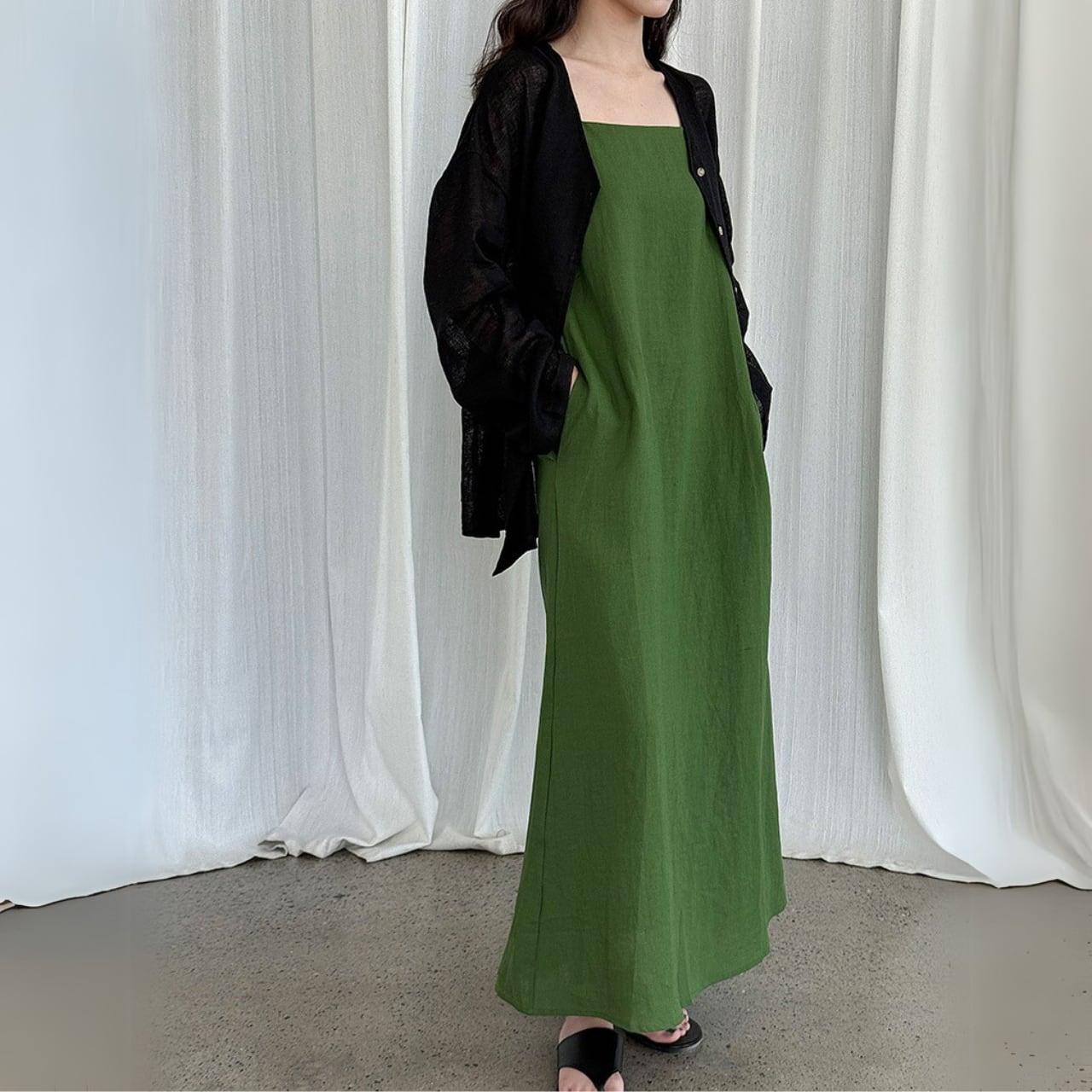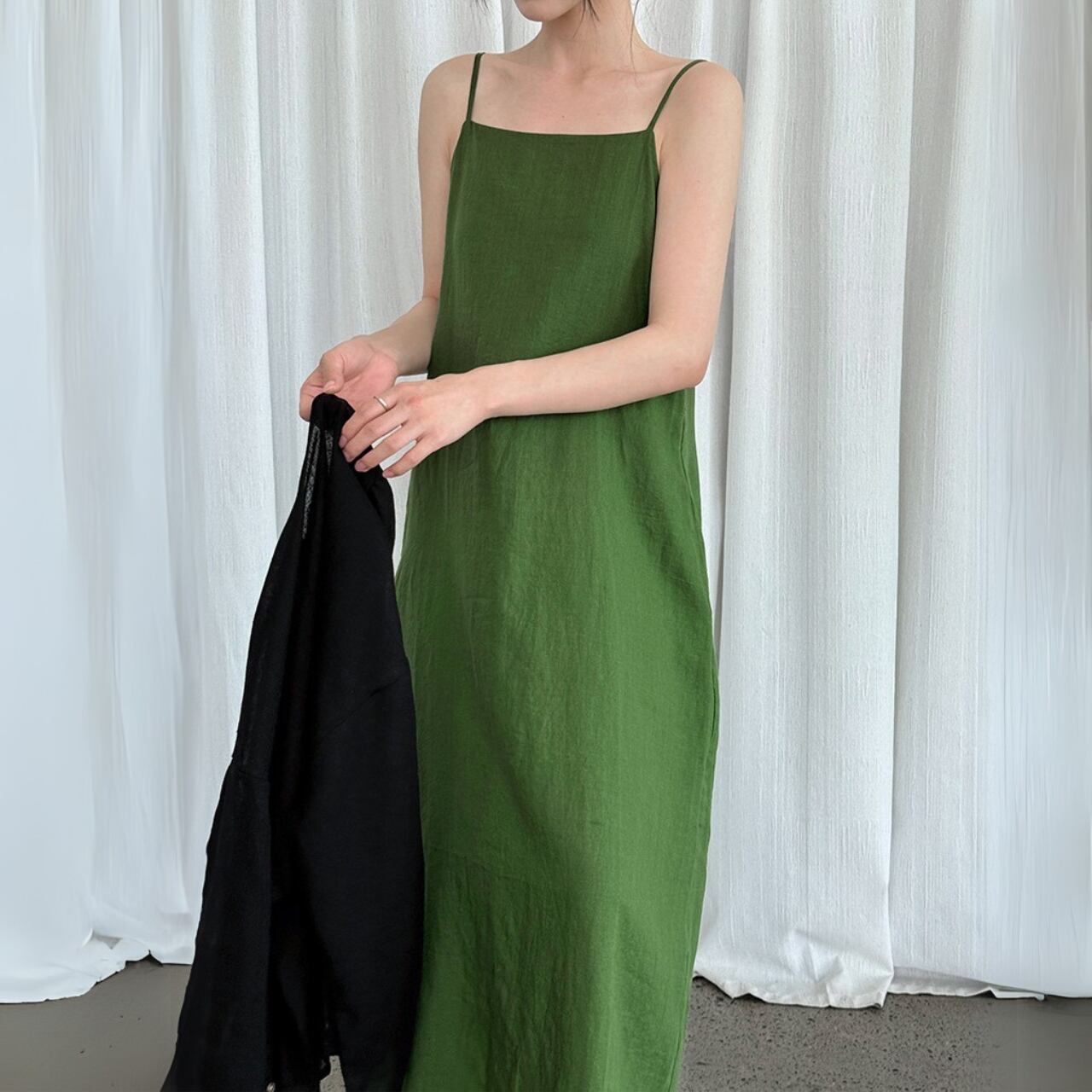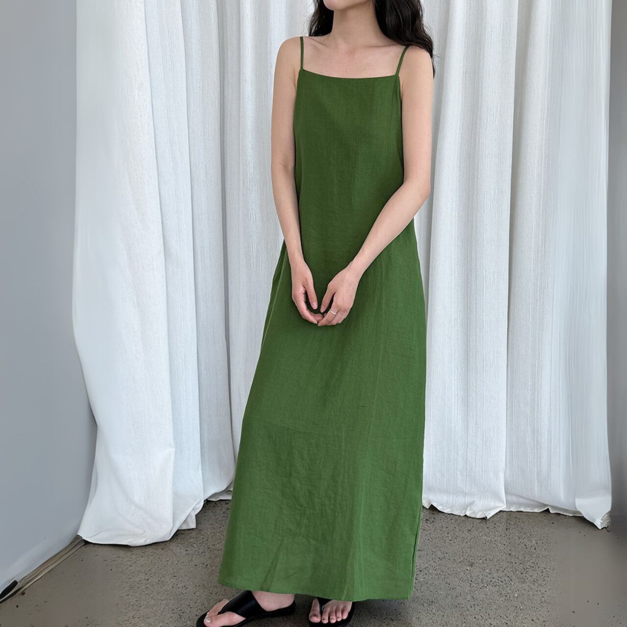 女性らしい抜け感を演出する、スクエアネックのキャミワンピース。 すっきりとしたネックラインが顔周りをシャープに見せてくれて、華奢なストラップが夏らしい軽やかさをプラスします。 バックスタイルにはスリットを施し、後ろ姿も抜かりなく。 シアーシャツとレイヤードすると、品のあるきれいめコーデを楽しめます。 ○カラー グリーン ブラウン ○サイズ M 胸囲:88cm ウエスト:94cm 着丈:115cm 裾周り:146cm L 胸囲:92cm ウエスト:98cm 着丈:116cm 裾周り:150cm *採寸方法により1-3cmの誤差がある場合がございます モデルサイズ 身長:162cm 体重:45kg 胸囲:80cm 腰囲:62cm ヒップ:87cm ・・・着用サイズМ ○素材 ラミー100% ◼️注意事項■ *当ショップでは、ご注文をいただいてから、一点ずつ商品をお取り寄せさせていただいております。 *そのためご決済から発送までに、2~4週間前後のお時間をいただいております。余裕をもってご購入いただきますよう、お願い致します。 *商品の画像イメージは、お使いのデバイス設定や、商品撮影の環境等でも実物と色合いに誤差が生じることがあります。 *海外製品のため日本とは製造基準が異なります。ご理解のうえご購入ください。 *イメージ違いやサイズ違い等、お客様都合によりますキャンセル・返品交換はご遠慮ください。 ================== ■ご購入前にこちらをお読みください■ →https://shop.otonatu.com/about ================== ◇Shop top pageはこちらから◇ https://shop.otonatu.com/ ◇今人気!注目のアイテムをチェック↓◇ https://shop.otonatu.com/categories/5693006 ◇Instagram\Please follow us!/ https://www.instagram.com/otonatu.shop
