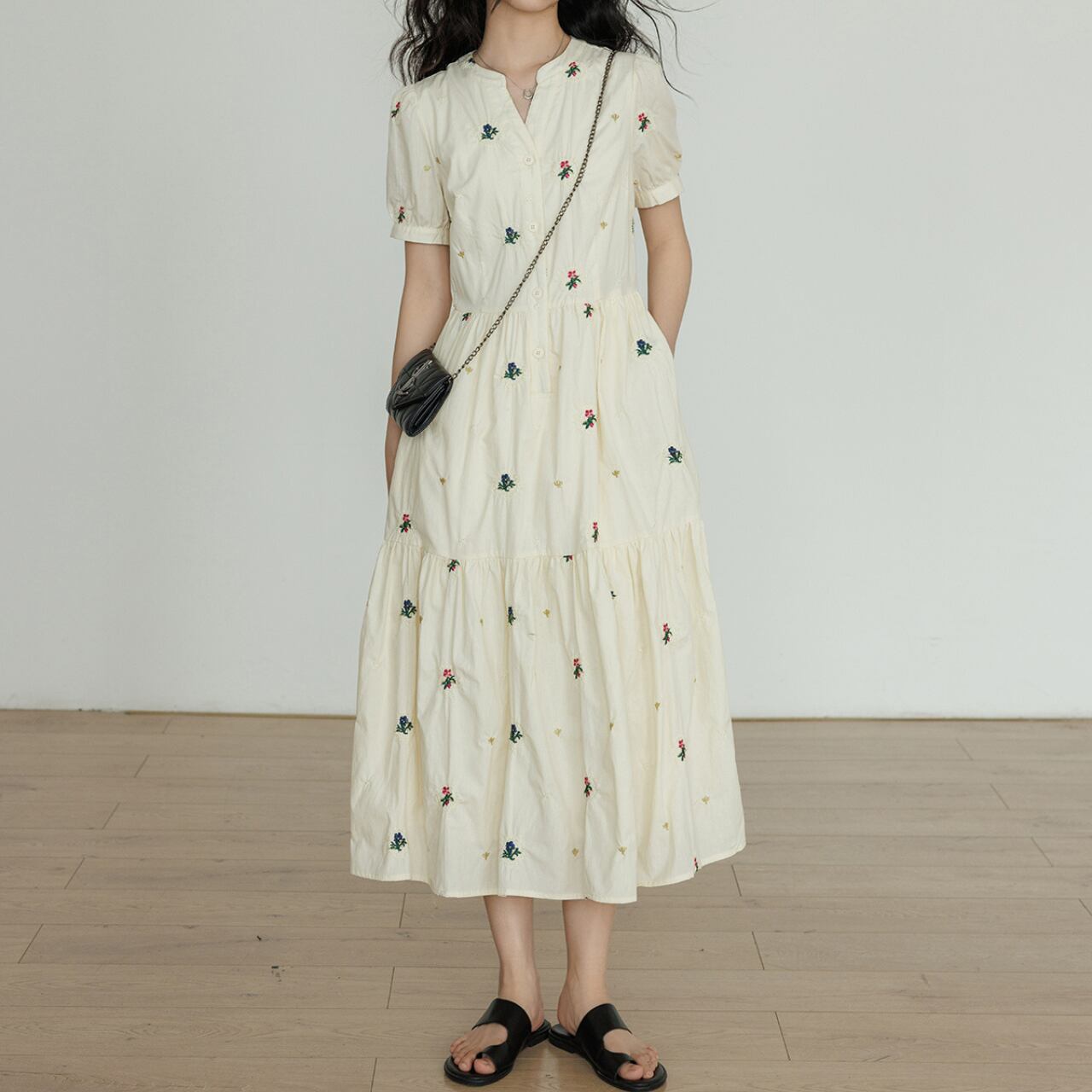 愛らしい小花の刺繍が目を惹く、ナチュラルで可憐なワンピース。