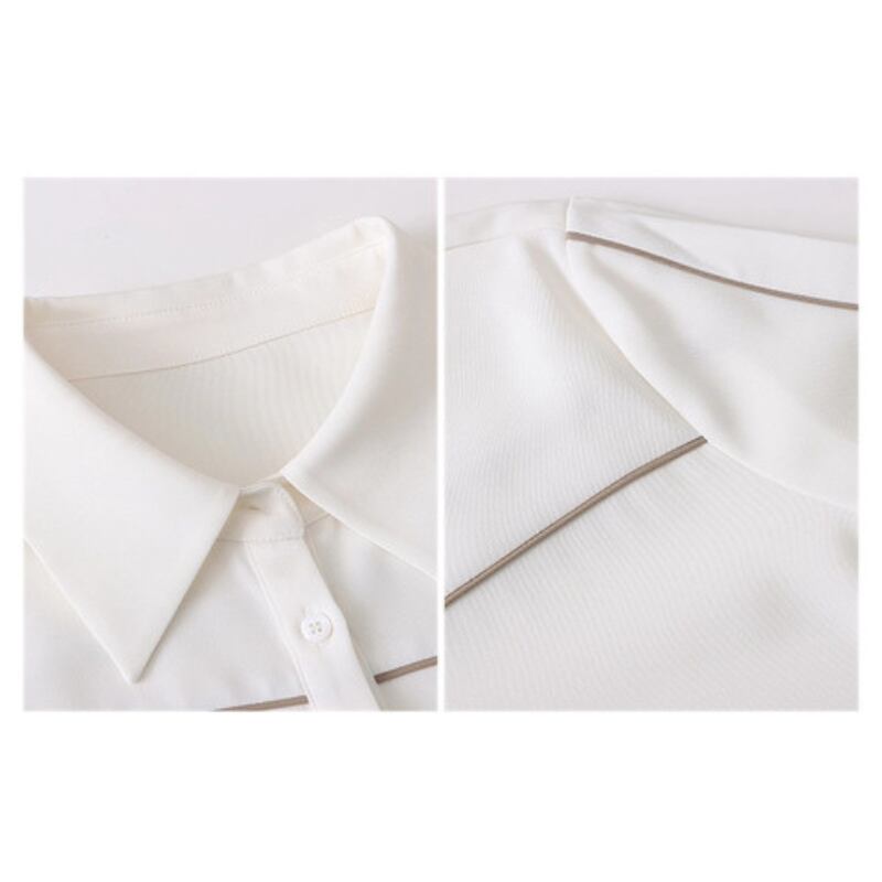 ピンラインがコーディネートを引き立てます。 スカートにもパンツスタイルにもあわせやすいシャツブラウスです。 ○カラー オフホワイト ○サイズ S 肩幅:37cm 胸囲:96cm 着丈:60cm 袖丈:55cm M 肩幅:38cm 胸囲:100cm 着丈:61cm 袖丈:56cm L 肩幅:39cm 胸囲:104cm 着丈:62cm 袖丈:57cm XL 肩幅:40cm 胸囲:108cm 着丈:63cm 袖丈:58cm *採寸方法により1-3cmの誤差がある場合がございます ○素材 ポリエステル96% スパンテックス4% ◼️注意事項■ *当ショップでは、ご注文をいただいてから、一点ずつ商品をお取り寄せさせていただいております。 *そのためご決済から発送までに、2~4週間前後のお時間をいただいております。余裕をもってご購入いただきますよう、お願い致します。 *商品の画像イメージは、お使いのデバイス設定や、商品撮影の環境等でも実物と色合いに誤差が生じることがあります。 *海外製品のため日本とは製造基準が異なります。ご理解のうえご購入ください。 *イメージ違いやサイズ違い等、お客様都合によりますキャンセル・返品交換はご遠慮ください。 ================== ■ご購入前にこちらをお読みください■ →https://shop.otonatu.com/about ================== ◇Shop top pageはこちらから◇ https://shop.otonatu.com/ ◇今人気!注目のアイテムをチェック↓◇ https://shop.otonatu.com/categories/5693006 ◇Instagram\Please follow us!/ https://www.instagram.com/otonatu.shop