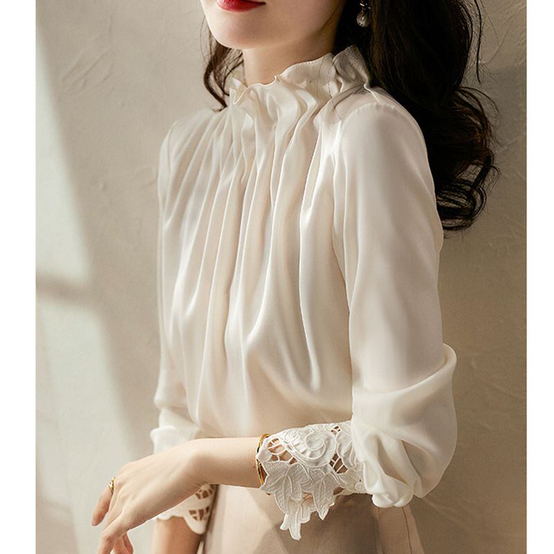 品の良い襟元のフリルと袖口のレースデザインがフェミニストスタイルを完成させてくれます。
