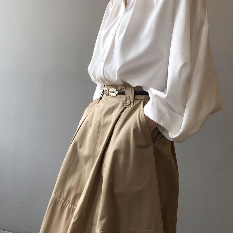 ウエストからゆるやかに広がるフレアラインが美しいスカート。