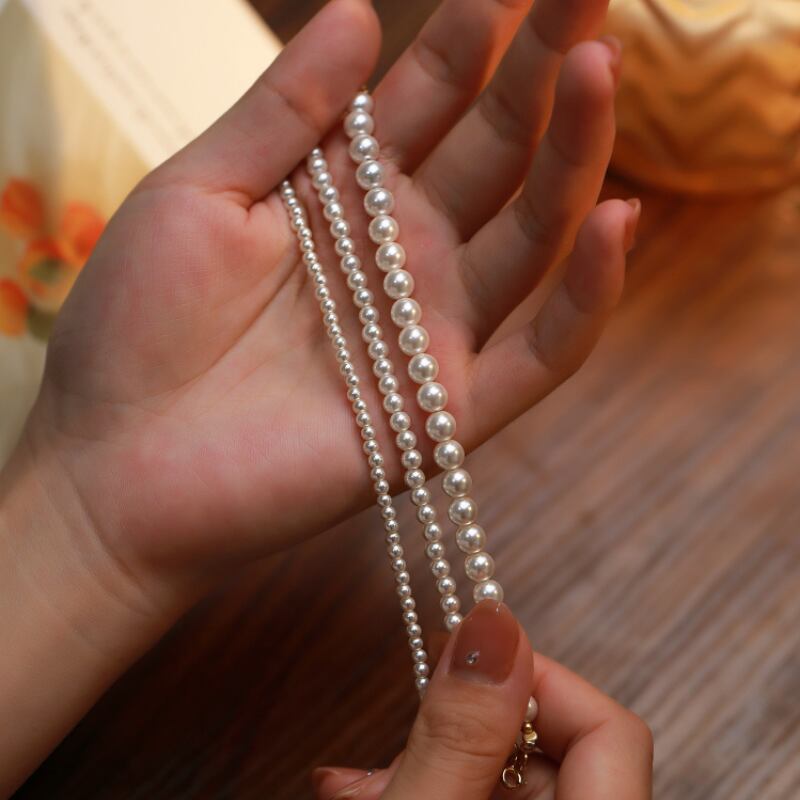 キラキラと輝くパールブレスレット、3mm、4mm、6mmの3つのサイズからお選びいただけます。