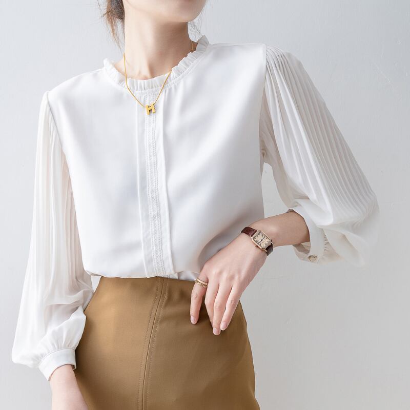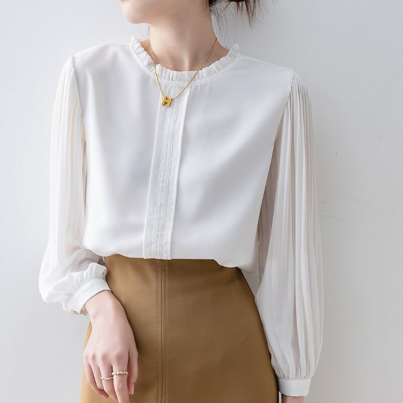 ボリューム感のあるランタンスリーブがオシャレな、長袖のフレンチシャツ。 首元のフリルとプリーツデザインが、上品な女性らしさを演出してくれます。 タイトなシルエットのボトムスを合わせると、コーディネートがすっきりと美しく纏まります。 ○カラー ホワイト ○サイズ S 肩幅:38cm 胸囲:91cm 着丈:63cm 袖丈:55cm M 肩幅:39cm 胸囲:95cm 着丈:64cm 袖丈:56cm L 肩幅:40cm 胸囲:99cm 着丈:65cm 袖丈:57cm XL 肩幅:41cm 胸囲:103cm 着丈:66cm 袖丈:58cm 2XL 肩幅:42cm 胸囲:107cm 着丈:67cm 袖丈:59cm *採寸方法により1-3cmの誤差がある場合がございます ○素材 ポリエステル100% ◼️注意事項■ *当ショップでは、ご注文をいただいてから、一点ずつ商品をお取り寄せさせていただいております。 *そのためご決済から発送までに、2~4週間前後のお時間をいただいております。余裕をもってご購入いただきますよう、お願い致します。 *商品の画像イメージは、お使いのデバイス設定や、商品撮影の環境等でも実物と色合いに誤差が生じることがあります。 *海外製品のため日本とは製造基準が異なります。ご理解のうえご購入ください。 *イメージ違いやサイズ違い等、お客様都合によりますキャンセル・返品交換はご遠慮ください。 ================== ■ご購入前にこちらをお読みください■ →https://shop.otonatu.com/about ================== ◇Shop top pageはこちらから◇ https://shop.otonatu.com/ ◇今人気!注目のアイテムをチェック↓◇ https://shop.otonatu.com/categories/5693006 ◇Instagram\Please follow us!/ https://www.instagram.com/otonatu.shop