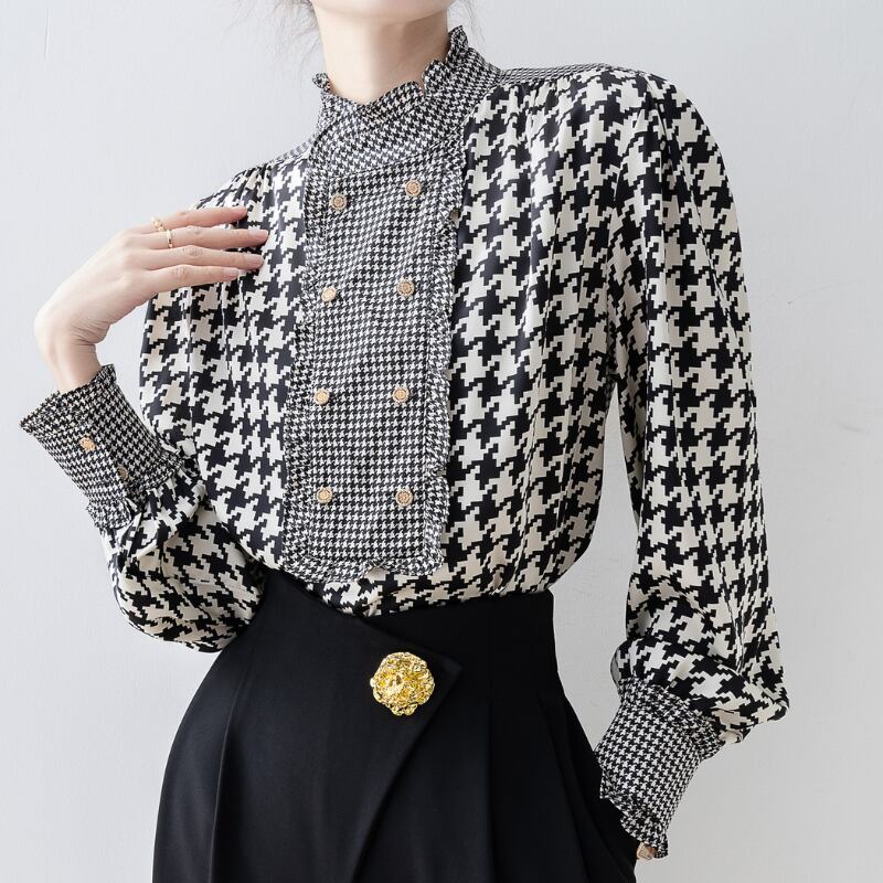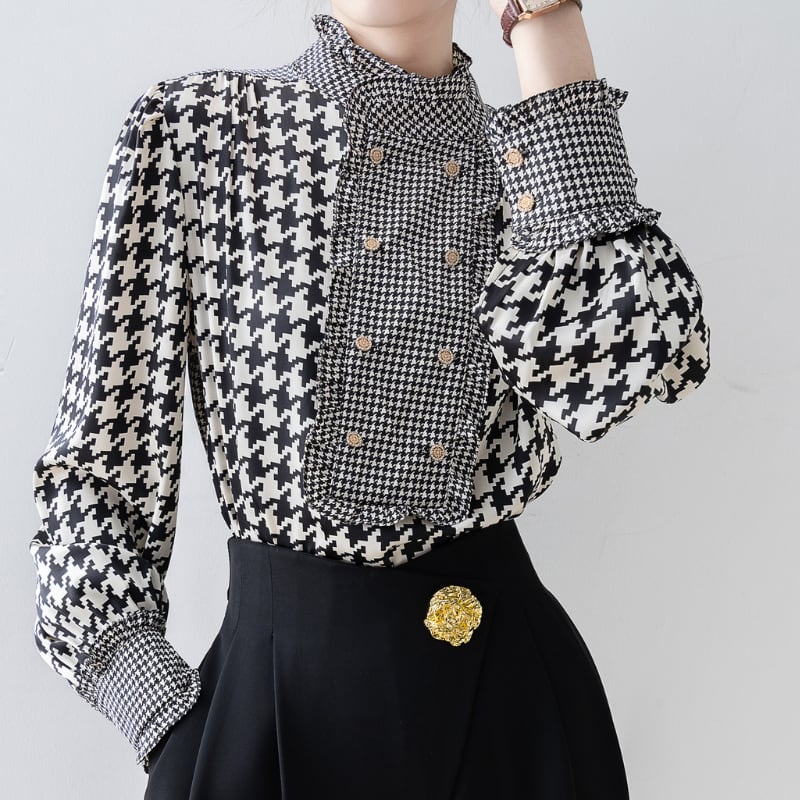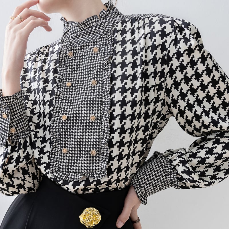 パリジェンヌを連想させるレトロ×エレガンスなニュアンスが魅力的な、千鳥格子柄の長袖シャツ。 細部に至るまでデザインにこだわっている為、高級感と気品のあるアイテムです。 ブラックのボトムスを合わせると、より洗練された印象に。 ○カラー ホワイト×ブラック ○サイズ S 肩幅:34cm 胸囲:98cm 着丈:59cm 袖丈:59cm M 肩幅:35cm 胸囲:102cm 着丈:60cm 袖丈:59.5cm L 肩幅:36cm 胸囲:106cm 着丈:61cm 袖丈:60cm XL 肩幅:37cm 胸囲:110cm 着丈:62cm 袖丈:60.5cm 2XL 肩幅:38cm 胸囲:114cm 着丈:63cm 袖丈:61cm *採寸方法により1-3cmの誤差がある場合がございます ○素材 ポリエステル100% ◼️注意事項■ *当ショップでは、ご注文をいただいてから、一点ずつ商品をお取り寄せさせていただいております。 *そのためご決済から発送までに、2~4週間前後のお時間をいただいております。余裕をもってご購入いただきますよう、お願い致します。 *商品の画像イメージは、お使いのデバイス設定や、商品撮影の環境等でも実物と色合いに誤差が生じることがあります。 *海外製品のため日本とは製造基準が異なります。ご理解のうえご購入ください。 *イメージ違いやサイズ違い等、お客様都合によりますキャンセル・返品交換はご遠慮ください。 ================== ■ご購入前にこちらをお読みください■ →https://shop.otonatu.com/about ================== ◇Shop top pageはこちらから◇ https://shop.otonatu.com/ ◇今人気!注目のアイテムをチェック↓◇ https://shop.otonatu.com/categories/5693006 ◇Instagram\Please follow us!/ https://www.instagram.com/otonatu.shop