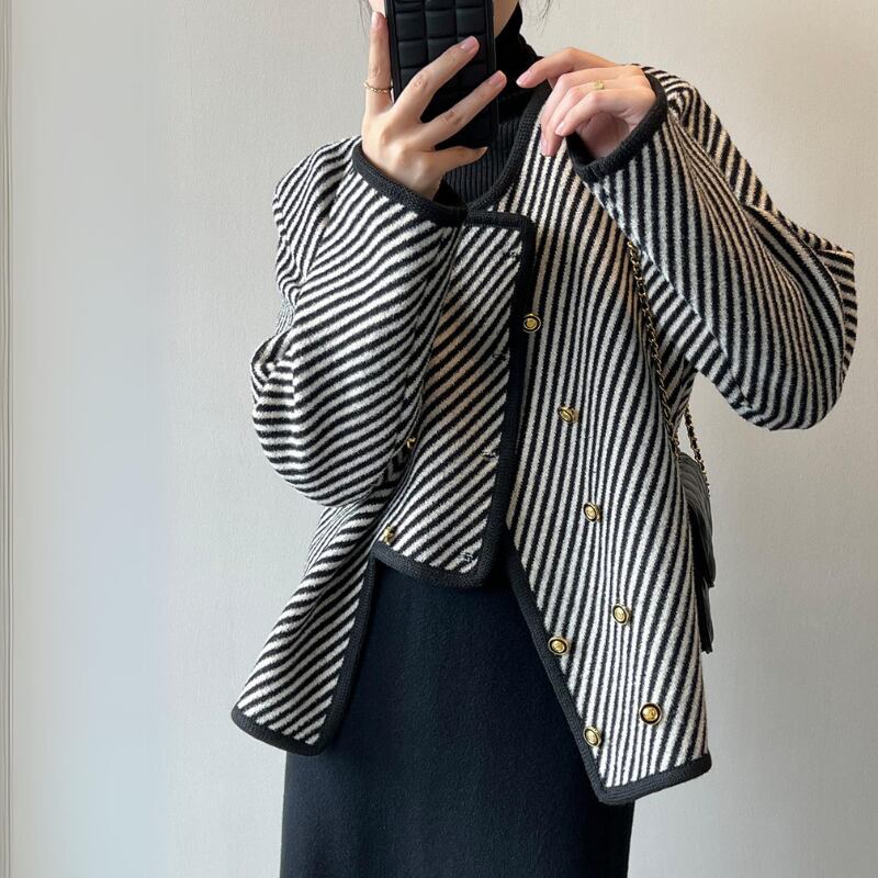 ダイアゴナルストライプノーカラーショートジャケット 00473