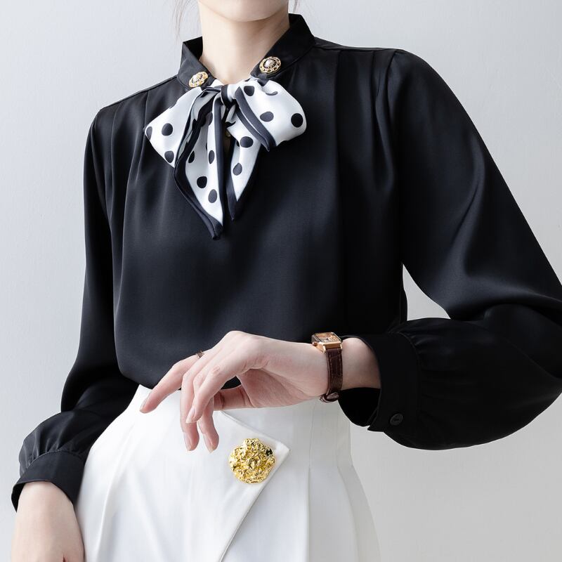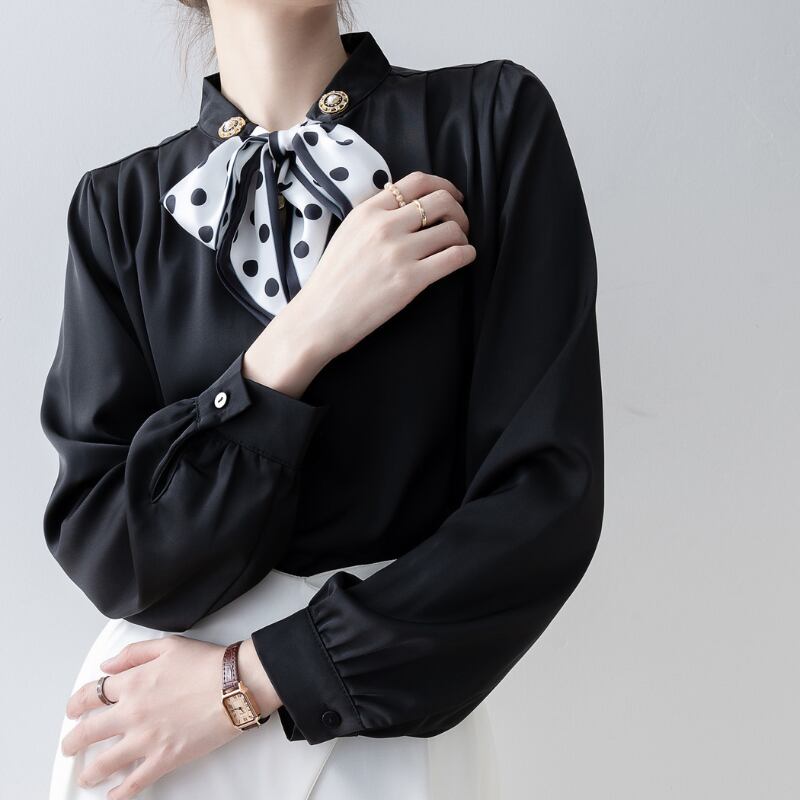 モノトーンのドットプリント入りのリボンが大人可愛い、長袖ブラウス。 首元のエレガントなボタン装飾も高級感があり、顔周りがぱっと華やかな印象に。 ○カラー ブラック ○サイズ S 肩幅:35cm 胸囲:96cm 着丈:58cm 袖丈:56cm M 肩幅:36cm 胸囲:100cm 着丈:59cm 袖丈:57cm L 肩幅:37cm 胸囲:104cm 着丈:60cm 袖丈:58cm XL 肩幅:38cm 胸囲:108cm 着丈:61cm 袖丈:59cm 2XL 肩幅:39cm 胸囲:112cm 着丈:62cm 袖丈:60cm *採寸方法により1-3cmの誤差がある場合がございます ○素材 ポリエステル100% ◼️注意事項■ *当ショップでは、ご注文をいただいてから、一点ずつ商品をお取り寄せさせていただいております。 *そのためご決済から発送までに、2~4週間前後のお時間をいただいております。余裕をもってご購入いただきますよう、お願い致します。 *商品の画像イメージは、お使いのデバイス設定や、商品撮影の環境等でも実物と色合いに誤差が生じることがあります。 *海外製品のため日本とは製造基準が異なります。ご理解のうえご購入ください。 *イメージ違いやサイズ違い等、お客様都合によりますキャンセル・返品交換はご遠慮ください。 ================== ■ご購入前にこちらをお読みください■ →https://shop.otonatu.com/about ================== ◇Shop top pageはこちらから◇ https://shop.otonatu.com/ ◇今人気!注目のアイテムをチェック↓◇ https://shop.otonatu.com/categories/5693006 ◇Instagram\Please follow us!/ https://www.instagram.com/otonatu.shop