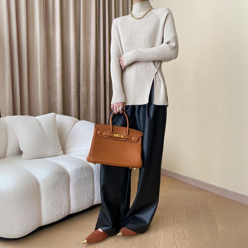 シンプルで洗練されたデザインが魅力的な、ハイネックの長袖ニット。 伸縮性のある生地が体に程よくフィットしてくれて、着心地抜群! サイドスリットが上品なアクセントになっていて、エレガントに決まります。 ○カラー グレージュ / レッド / アイボリー / ブラック ○サイズ F 胸囲:94-114cm 着丈:63cm ラグラン袖丈:66cm *採寸方法により1-3cmの誤差がある場合がございます モデルサイズ 身長:168cm 55kg ○素材 レーヨン45% / ポリエステル28% / ナイロン27% ◼️注意事項■ *当ショップでは、ご注文をいただいてから、一点ずつ商品をお取り寄せさせていただいております。 *そのためご決済から発送までに、2~4週間前後のお時間をいただいております。余裕をもってご購入いただきますよう、お願い致します。 *商品の画像イメージは、お使いのデバイス設定や、商品撮影の環境等でも実物と色合いに誤差が生じることがあります。 *海外製品のため日本とは製造基準が異なります。ご理解のうえご購入ください。 *イメージ違いやサイズ違い等、お客様都合によりますキャンセル・返品交換はご遠慮ください。 ================== ■ご購入前にこちらをお読みください■ →https://shop.otonatu.com/about ================== ◇Shop top pageはこちらから◇ https://shop.otonatu.com/ ◇今人気!注目のアイテムをチェック↓◇ https://shop.otonatu.com/categories/5693006 ◇Instagram\Please follow us!/ https://www.instagram.com/otonatu.shop