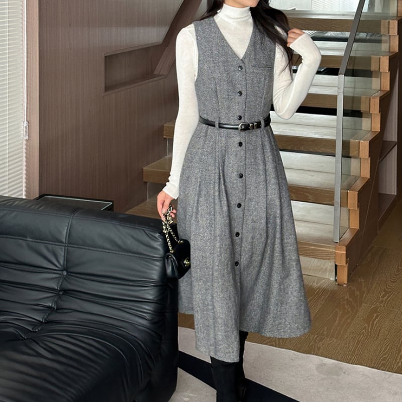 大人シックなデザインが魅力的な、Vネックのノースリーブワンピース。 ワンピースと相性抜群の細ベルトがセットで付いてくるので、簡単にオシャレなウエストマークスタイルを楽しめます。 ハイネックのトップスを合わせると、より上品で大人可愛い印象に。 ○カラー グレー ○サイズ S 肩幅:32cm 胸囲:80cm 着丈:113cm M 肩幅:33cm 胸囲:84cm 着丈:114cm L 肩幅:34cm 胸囲:88cm 着丈:115cm XL 肩幅:35cm 胸囲:92cm 着丈:116cm *採寸方法により1-3cmの誤差がある場合がございます モデルサイズ 身長:165cm 45kg 肩幅37cm 胸囲:80cm 腰囲62cm ヒップ82㎝ ○素材 ウール混紡 ◼️注意事項■ *当ショップでは、ご注文をいただいてから、一点ずつ商品をお取り寄せさせていただいております。 *そのためご決済から発送までに、2~4週間前後のお時間をいただいております。余裕をもってご購入いただきますよう、お願い致します。 *商品の画像イメージは、お使いのデバイス設定や、商品撮影の環境等でも実物と色合いに誤差が生じることがあります。 *海外製品のため日本とは製造基準が異なります。ご理解のうえご購入ください。 *イメージ違いやサイズ違い等、お客様都合によりますキャンセル・返品交換はご遠慮ください。 ================== ■ご購入前にこちらをお読みください■ →https://shop.otonatu.com/about ================== ◇Shop top pageはこちらから◇ https://shop.otonatu.com/ ◇今人気!注目のアイテムをチェック↓◇ https://shop.otonatu.com/categories/5693006 ◇Instagram\Please follow us!/ https://www.instagram.com/otonatu.shop