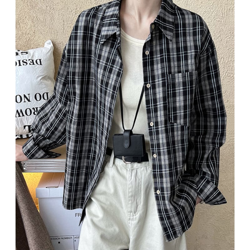 カジュアルロングスリーブチェックシャツ 00583