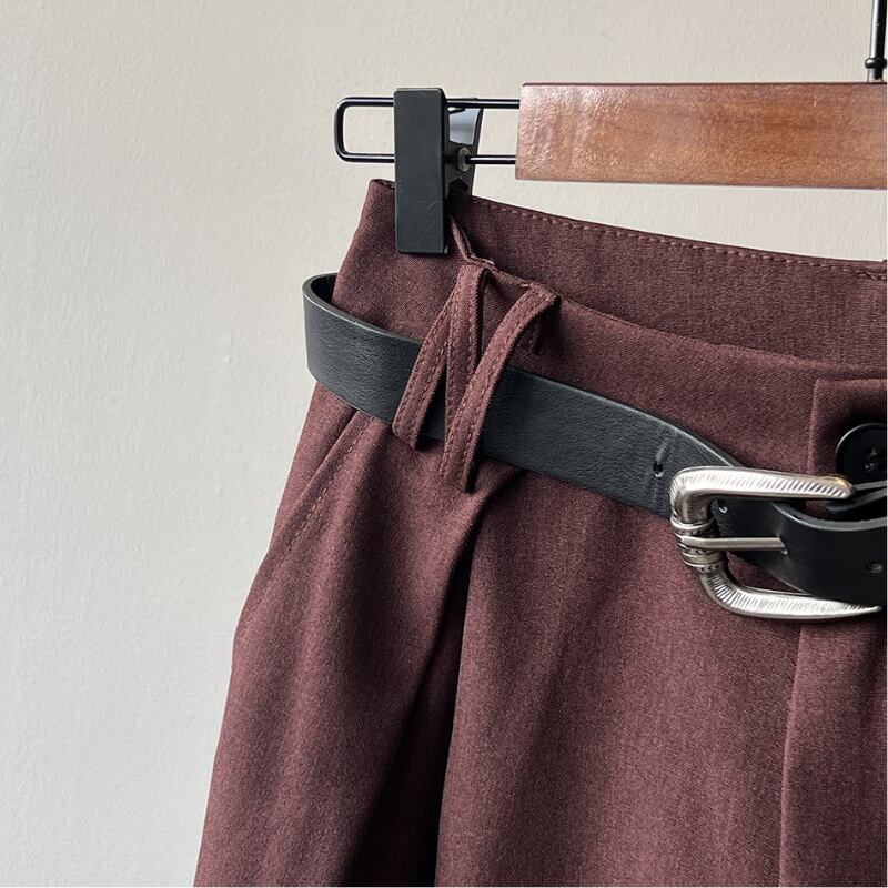 脚のラインを拾いにくいふんわりとしたテーパードシルエットが特徴的な、フルレングスのワイドパンツ。 気になる太ももやお尻周りをすっきりとカバーしてくれて、ラフさの中にきちんと感を絶妙に組み込んだ、大人カジュアルなアイテムです。 パンツと相性抜群のシックなベルトが付いてくるのも、嬉しいポイント! ○カラー ワインレッド / ブラック ○サイズ M ウエスト:64cm ヒップ:108cm 着丈:100cm わたり周り:80cm 裾周り:64cm L ウエスト:68cm ヒップ:112cm 着丈:101cm わたり周り:82cm 裾周り:66cm *採寸方法により1-3cmの誤差がある場合がございます ○素材 ポリエステル97% / ポリウレタン3% ◼️注意事項■ *当ショップでは、ご注文をいただいてから、一点ずつ商品をお取り寄せさせていただいております。 *そのためご決済から発送までに、2~4週間前後のお時間をいただいております。余裕をもってご購入いただきますよう、お願い致します。 *商品の画像イメージは、お使いのデバイス設定や、商品撮影の環境等でも実物と色合いに誤差が生じることがあります。 *海外製品のため日本とは製造基準が異なります。ご理解のうえご購入ください。 *イメージ違いやサイズ違い等、お客様都合によりますキャンセル・返品交換はご遠慮ください。 ================== ■ご購入前にこちらをお読みください■ →https://shop.otonatu.com/about ================== ◇Shop top pageはこちらから◇ https://shop.otonatu.com/ ◇今人気!注目のアイテムをチェック↓◇ https://shop.otonatu.com/categories/5693006 ◇Instagram\Please follow us!/ https://www.instagram.com/otonatu.shop