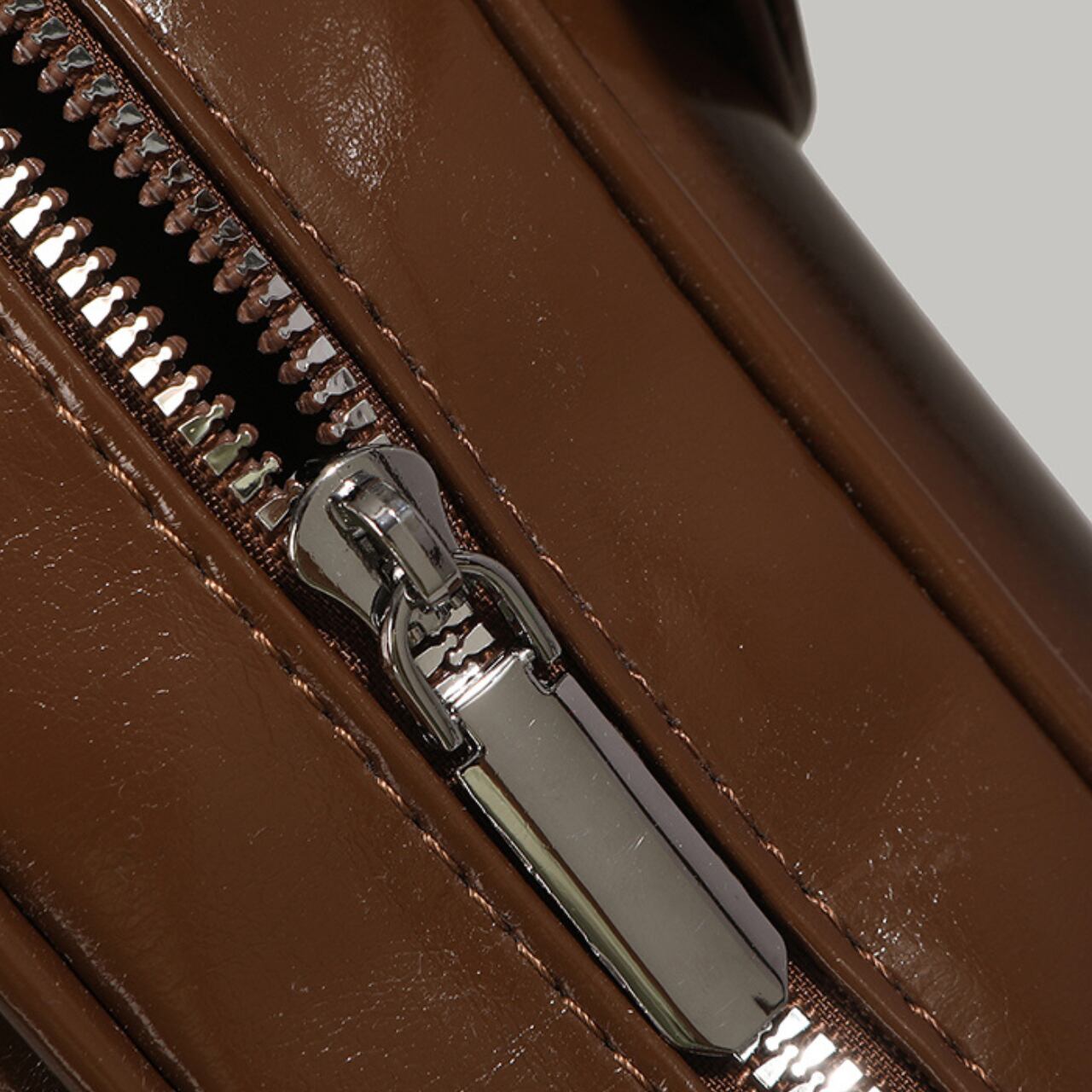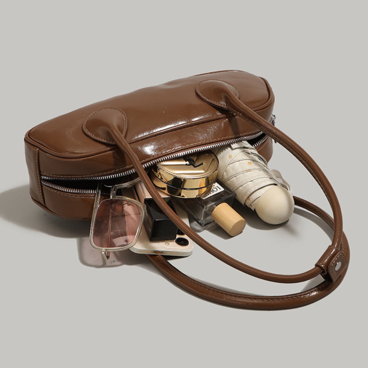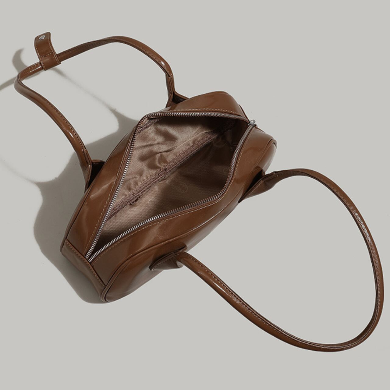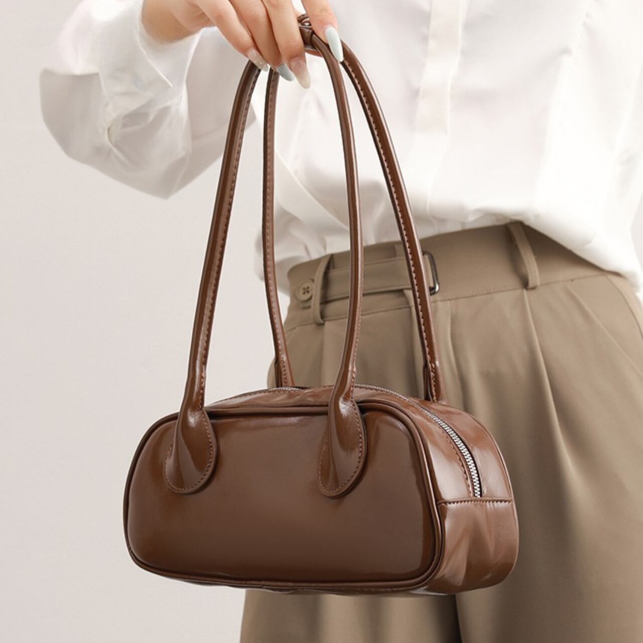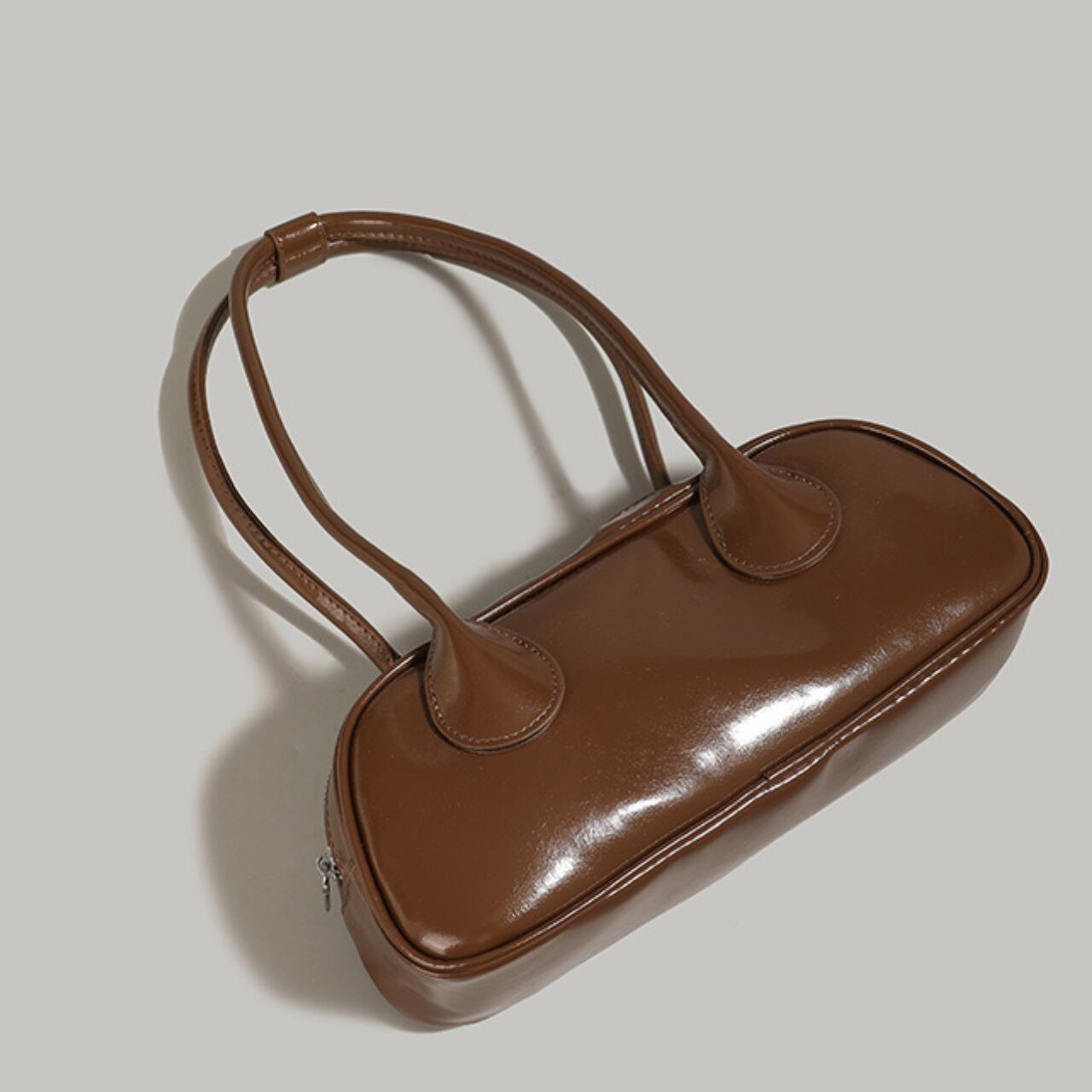 横長のシルエットとシンプルなデザインが魅力的な、ショルダーバッグ。