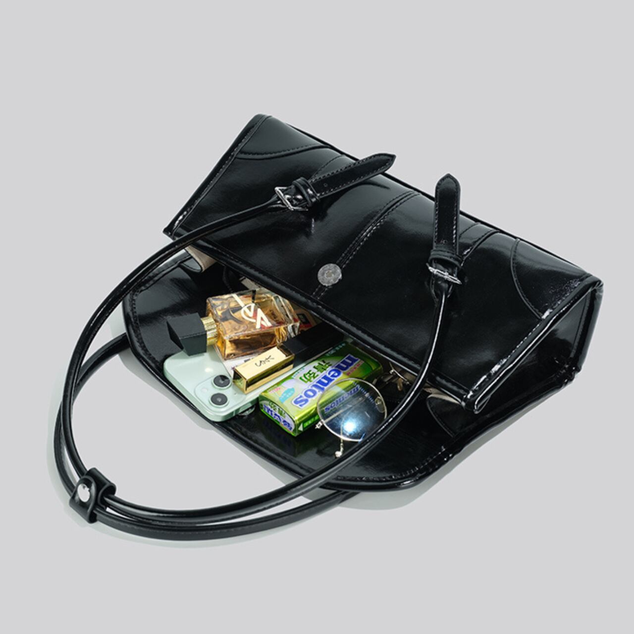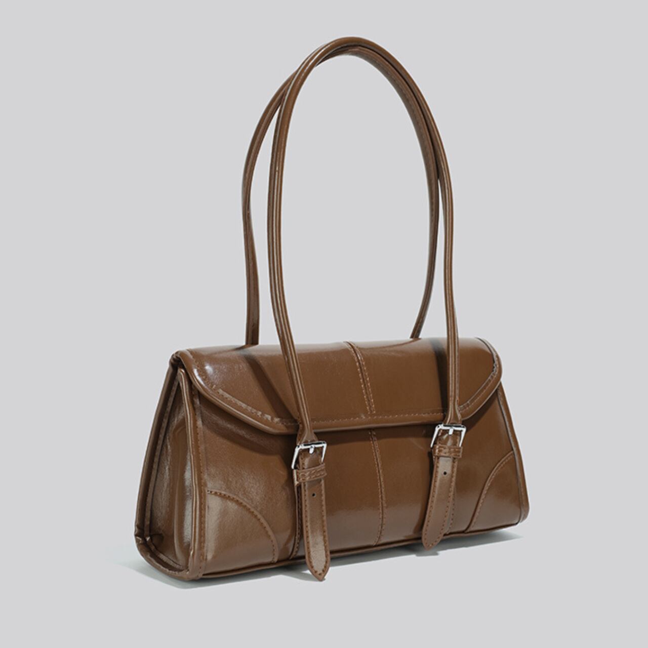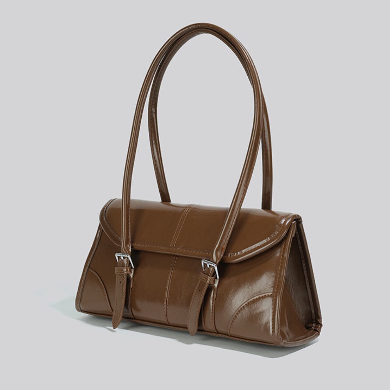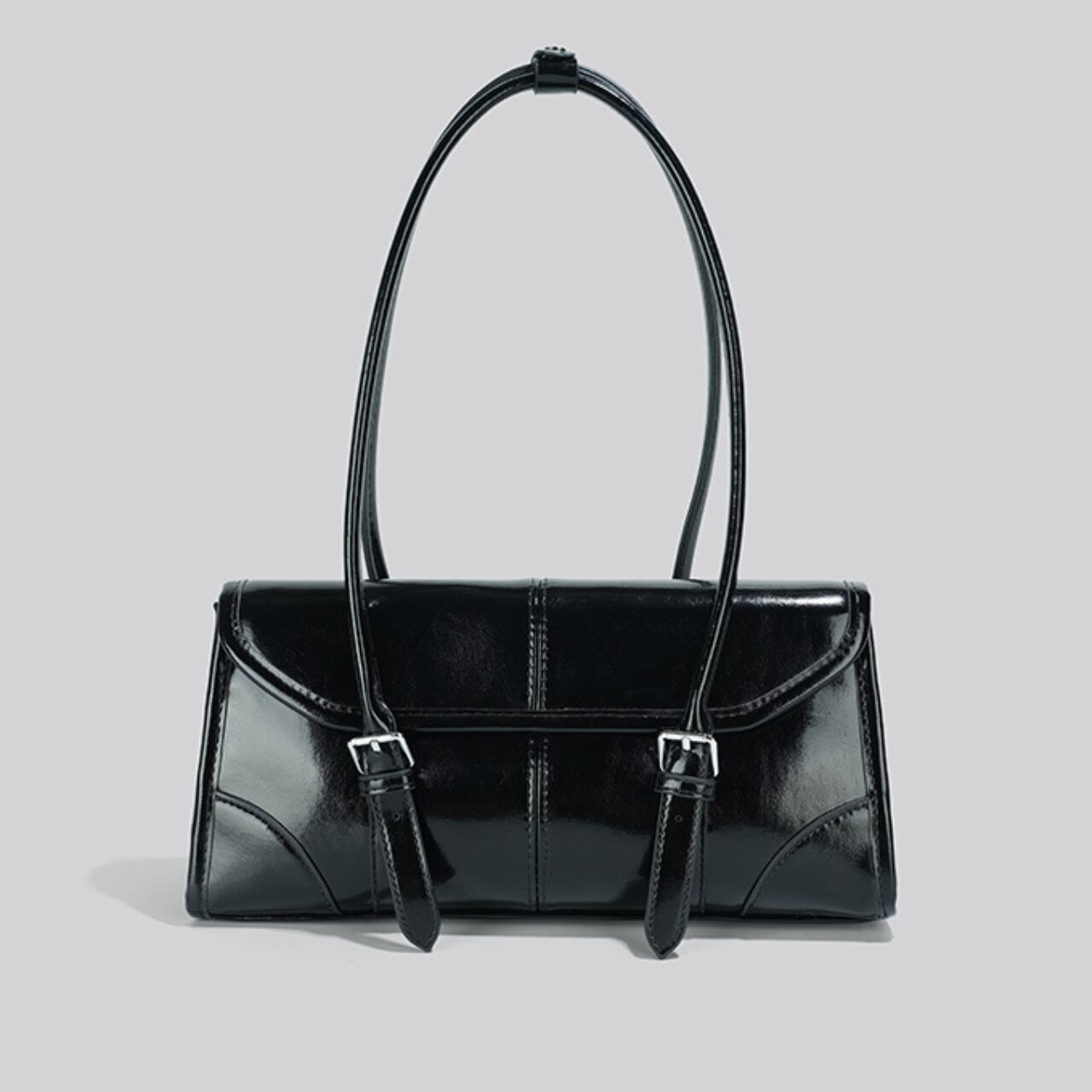 高級感のあるスタイリッシュさが魅力的な、長方形型のショルダーバッグ。