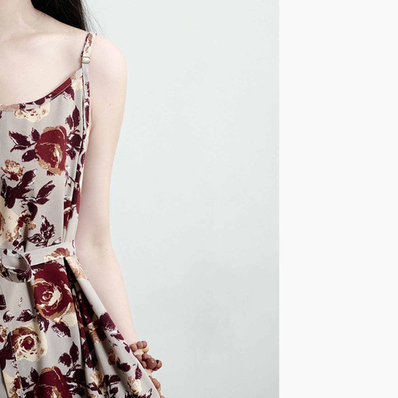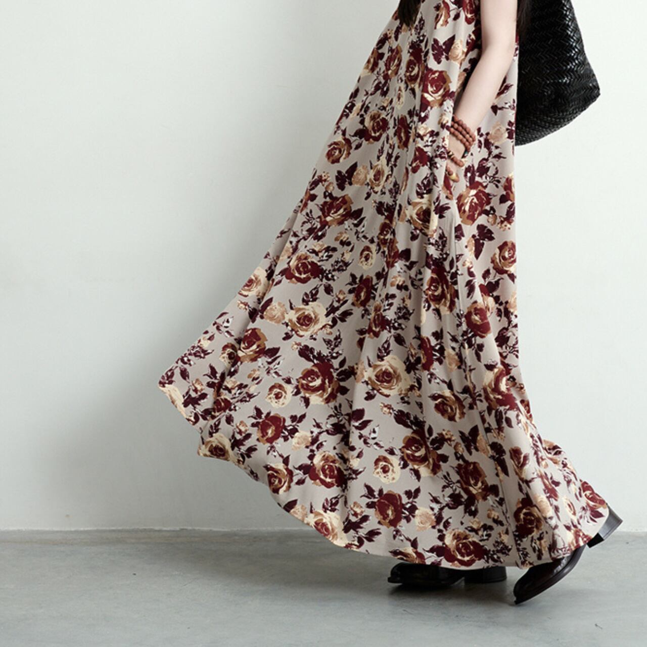 華やかなフラワープリントが美しい、ロング丈のキャミソールワンピース。