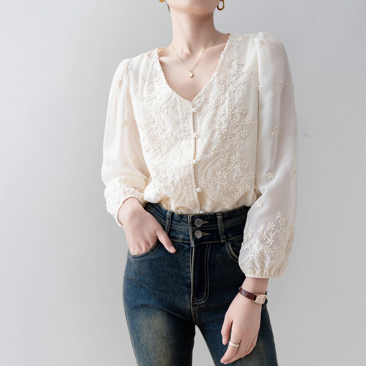 立体的な花柄刺繍がオシャレな、Vネックのレースシャツ。 単色アイテムながらに華やかで、コーディネートの主役になれる1枚です。 今季注目を集めているブラウンカラーを合わせて綺麗めスタイル、デニムパンツでカジュアルダウン、合わせるボトムスによって表情を変えてくれるのが魅力的! ○カラー アイボリー ○サイズ S 肩幅:36cm 胸囲:92cm 着丈:60cm 袖丈:57cm M 肩幅:37cm 胸囲:96cm 着丈:61cm 袖丈:58cm L 肩幅:38cm 胸囲:100cm 着丈:62cm 袖丈:59cm XL 肩幅:39cm 胸囲:104cm 着丈:63cm 袖丈:60cm *採寸方法により1-3cmの誤差がある場合がございます ○素材 ポリエステル100% ◼️注意事項■ *当ショップでは、ご注文をいただいてから、一点ずつ商品をお取り寄せさせていただいております。 *そのためご決済から発送までに、2~4週間前後のお時間をいただいております。余裕をもってご購入いただきますよう、お願い致します。 *商品の画像イメージは、お使いのデバイス設定や、商品撮影の環境等でも実物と色合いに誤差が生じることがあります。 *海外製品のため日本とは製造基準が異なります。ご理解のうえご購入ください。 *イメージ違いやサイズ違い等、お客様都合によりますキャンセル・返品交換はご遠慮ください。 ================== ■ご購入前にこちらをお読みください■ →https://shop.otonatu.com/about ================== ◇Shop top pageはこちらから◇ https://shop.otonatu.com/ ◇今人気!注目のアイテムをチェック↓◇ https://shop.otonatu.com/categories/5693006 ◇Instagram\Please follow us!/ https://www.instagram.com/otonatu.shop